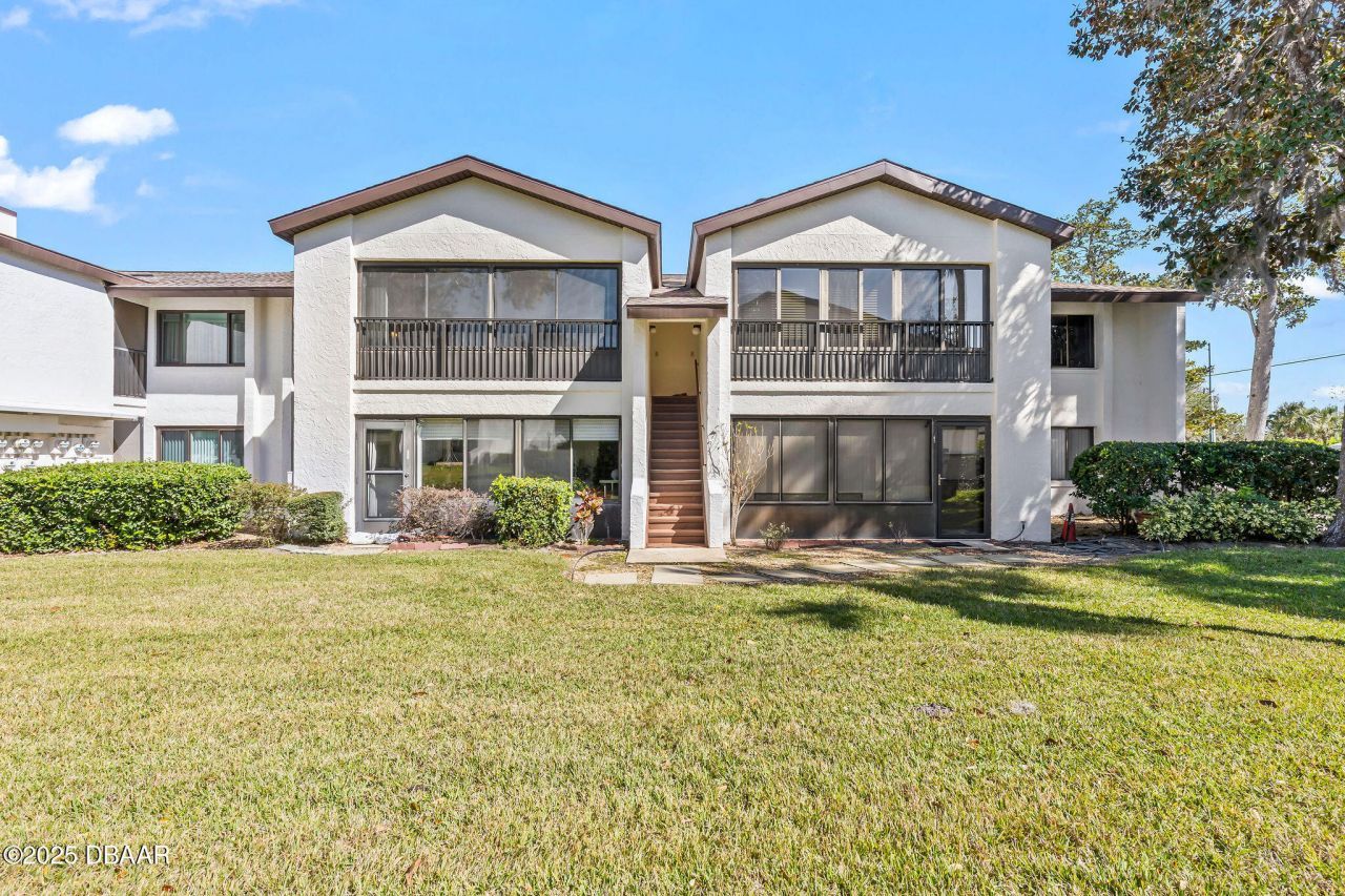 Tucked into a quiet 55+ community in the heart of Ormond Beach, this charming 2-bedroom, 2-bath condo offers convenience and low-maintenance living. Set on the second floor, this home is comfortably removed from ground-level activity, perfect for those who appreciate quiet surroundings and a little extra privacy. Whether you're downsizing, looking for a lock-and-leave condo, or just searching for an affordable Ormond Beach condo for sale, this home checks all the boxes. Inside, you'll love how bright and open the space feels. Vaulted ceilings and skylights fill the living and dining area with natural light, while a cozy fireplace adds warmth and character. There's a built-in wet bar for your entertaining pleasure and sliding glass doors that lead to a sunny bonus room overlooking the landscaped courtyard and sparkling community pool.The eat-in kitchen features stainless steel appliances and plenty of room to cook and gather. The large primary bedroom offers a generous walk-in closet, and you'll appreciate the convenience of laundry inside the unit. Secured storage in the carport adds another thoughtful touch to make everyday living easy.Ormond Beach is known for its well-kept neighborhoods, friendly atmosphere, and relaxed coastal lifestyle. This location puts you within walking distance to Publix, restaurants, banks, shops, and less than four miles from the sandy beaches of the Atlantic Ocean and a short drive to Daytona International Speedway. Don't miss this wonderful place to settle in and enjoy the best of Ormond and Daytona Beach living. Some photos have been virtually staged.
