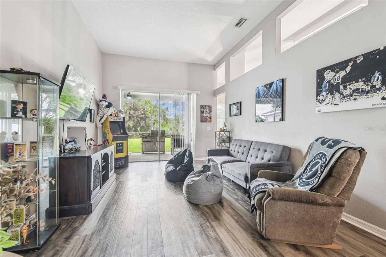 Located in the highly desirable Lake St. Charles community, this well-maintained 4-bedroom, 3-bath home offers the space, layout, and setting today's homeowners are searching for. Tucked away on a quiet cul-de-sac and situated on a rare 60x166 lot, the property provides both privacy and an expansive backyard that's hard to find in this neighborhood, with plenty of room to add a pool or design a custom outdoor living space tailored to your needs. With over 2,200 square feet of living space, the thoughtfully designed 3-way split floor plan creates flexibility for everyday living. Two secondary bedrooms are positioned at the front of the home with a convenient Jack-and-Jill bath, while a separate rear bedroom and full bath create an ideal private suite for guests, multigenerational living, or a home office. The primary suite is located on its own side of the home, offering a quiet retreat at the end of the day. Multiple living spaces including a formal living room, dining room, and a spacious family room provide room to gather and grow. Step outside to the covered, screened lanai overlooking the oversized backyard, a blank canvas ready for future entertaining, play space, or your own private outdoor retreat. Residents enjoy access to the nearby community center featuring a pool, playground, and scenic walking trails, all within a walkable, family-friendly setting. Conveniently located with easy access to the Crosstown, Downtown Tampa, and an abundance of shopping and dining options, this home offers the ideal balance of neighborhood charm and everyday convenience. If you've been looking for the right amount of space in a connected, community-oriented neighborhood, this Lake St. Charles home stands out for all the right reasons.