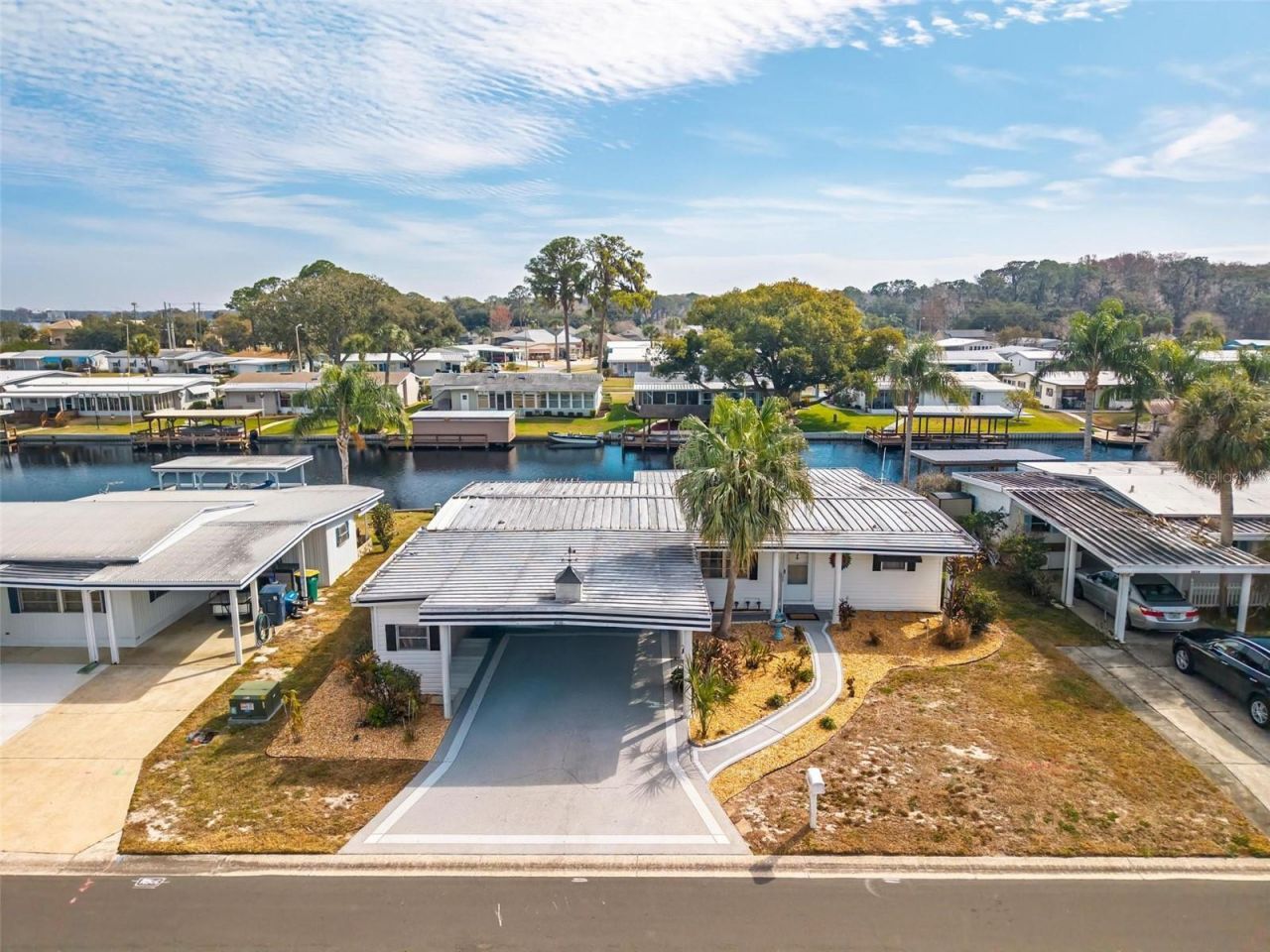 RARE 3 BED / 2.5 BATH WATERFRONT OPPORTUNITY! Boasting a rare and generous layout, this residence features 3 bedrooms, 2.5 bathrooms, and is situated on the canal with direct access to the Harris Chain of Lakes! Park in the large driveway, highlighted by a DOUBLE CARPORT and a shed equipped with a washer, dryer, and extra storage space. Step inside to find TWO master bedrooms - one on each side of the home - with walk-in closets and ceiling fans. Two of the bedrooms showcase a full ensuite and a half ensuite bath, attached for maximal functionality and convenience! The large enclosed Florida room boasts bright windows and features a panoramic water view you can enjoy come rain or shine! The outside features an uncovered patio, perfect for soaking in the sun and the serene water views! HOA/COMMUNITY: Imperial Terrace is a highly desirable 55+ retirement community offering a plethora of amenities - a community boat ramp with access to the Harris Chain of Lakes, a community pool, shuffleboard, and so much more! Featuring a low HOA fee and NO LOT RENT - you OWN the land! Imperial Terrace is located off Hwy 441, just minutes from shopping, dining, entertainment, county offices, and state-of-the-art medical facilities, PLUS, renowned local destinations - Mount Dora and The Villages! Easily commute to the beach coasts, Orlando attractions, airports and everywhere exciting that makes Floridians love living central' in the Sunshine State, year round or seasonal. Call to schedule your personal tour today!