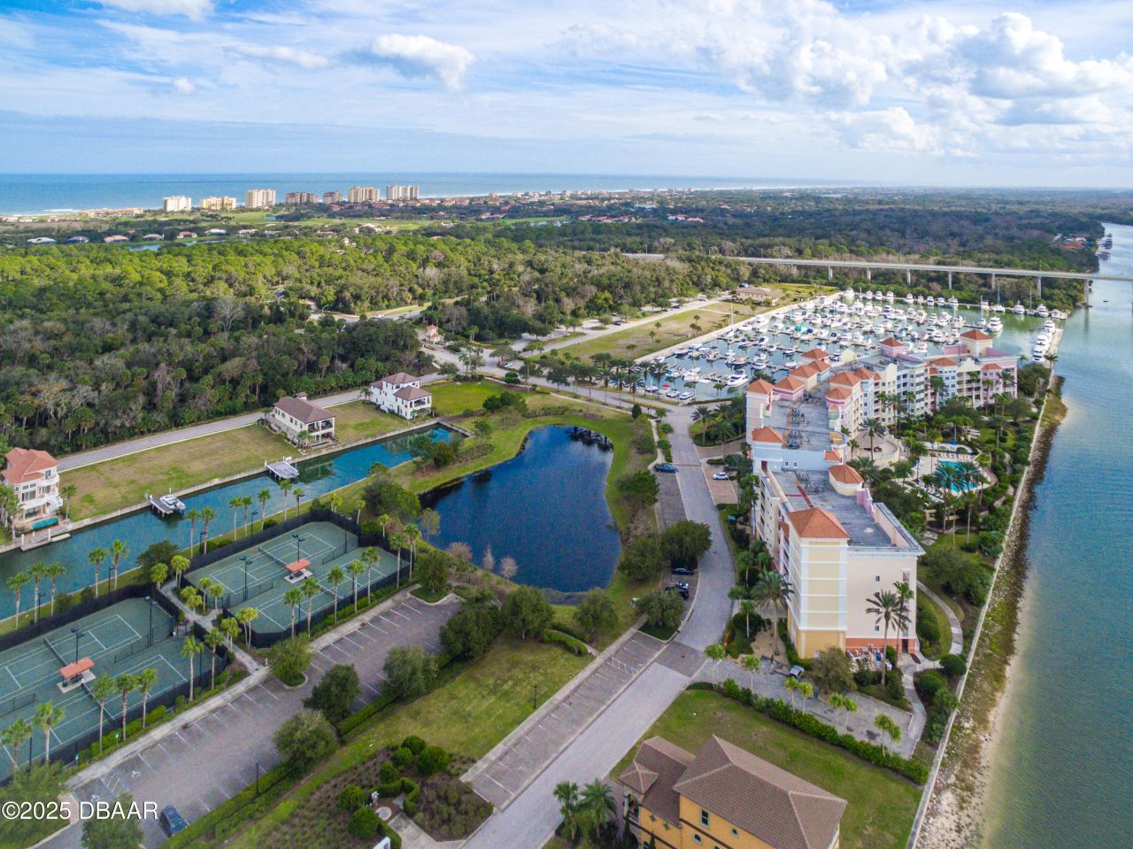 Yacht Harbor Top-Floor Riverfront Condominium - Sunrises, Sunsets & Pure Coastal Luxury. Perched on the top floor of the exclusive Yacht Harbor Village Condominium, the Jewel of the Matanzas River coastline, this stunning riverfront residence captures the very best of Palm Coast living. Here, every day begins with a brilliant sunrise over the sought after marina, where sailboats and yachts glisten in the morning light, and almost every evening ends with a golden sunset over the Intracoastal, complete with dolphins dancing through the water. Inside, no detail has been overlooked. This home has been completely remodeled with a refined coastal elegance, blending modern finishes with timeless design. The open-concept layout flows effortlessly to a private balcony, creating a seamless connection to the stunning water views. The chef's kitchen is both sleek and functional, showcasing quartz countertops, custom wood cabinetry, and top-of-the-line stainless steel appliances. The primary suite feels like a private retreat, offering panoramic water views, a spa-inspired bathroom with a step in shower and a soaking tub big enough for two and generous and custom designed walk-in closet space. All remote control window shades and plantation shutters were installed in August of 2023 along with the new Trane AC, water heater, super high end light fixtures, fancy bathroom faucets, gorgeous interior paint colors, and the mahogany wood flooring covering every inch of the floor space in the whole condo except for the porcelain tile entry. The current owners invested an immense amount thinking it would be their forever home but now it can be yours. Very tastefully thought out and designed right down to the California Closets custom pantry made special for every little kitchen item. While this residence is beautifully furnished, none of the furnishings convey, except for the two wall mounted tv's, but should you like the look, the current owners can share some of their sources for some items so that you can create a similar look but with your flare!Yacht Harbor residents enjoy an enviable lifestyle with access to a resort-style pool, world class tennis courts, pickleball courts, gym, and marina living with a Hammock Beach Membership. It's still beautiful even without one, too all tucked within a gated community with walking trails or picnics overlooking the boats and the river while just being minutes from Hammock Beach, world-class golf, dining, and coastal adventures. Condo dues are $865 per month which includes water, sewer, trash, basic cable, gate guard, bldg. insurance, exterior maintenance, roof. No assessments, no litigation as of Sept 2025. Social Membership needed to use all amenities. Current price is 15,000 plus Flagler Cty tax ; one time initiation and monthly dues, food minimums are payable by the Buyer for the lifetime of the membership.This is more than a home,it is a sanctuary of sun, sea, and sophistication, designed for those who want the very best of Florida's waterfront lifestyle.