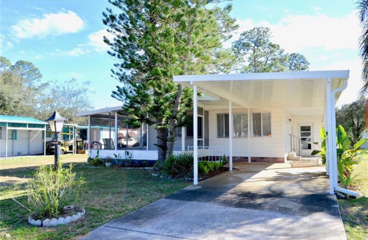 Welcome home to this cozy country retreat located in a 55 and older pet friendly community! Tastefully upgraded with newer kitchen, interior paint, newer flooring and walk-in shower and sinks. The front porch offers a quiet, serene view of the beautiful dog park across the street, providing a perfect country feel being tucked away in DeLand. Meadowlea Village is a vibrant 55+ community featuring a monthly calendar filled with activities. The reasonable monthly lot rental fee includes water, sewer, garbage, lawn service, basic cable, and access to the clubhouse and heated pool.