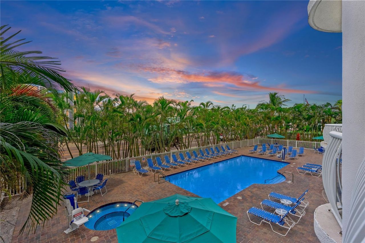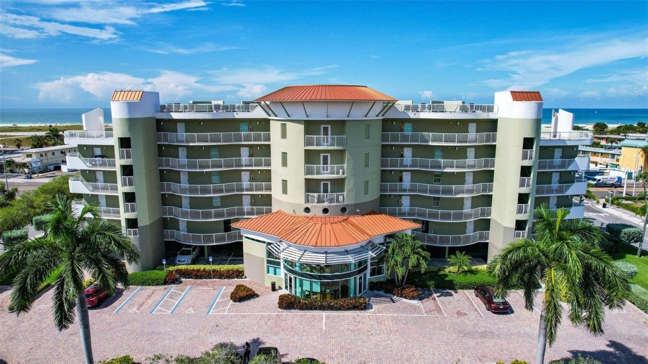 This 1br/1.5bth condo is sold fully furnished with updated decor and a beautiful view of the tropical palms overlooking the community pool. Crystal Palms allows for minimal 1-night stays to help maximize your rental investment. AC and dishwasher are newer (2021). Brand new king mattress (April 2025). New shower floor being installed May 2025. Newer primary bedroom flooring (2023). Stainless steel appliances, granite countertops, and washer dryer in unit. Balcony access from both living room and primary bedroom. Primary bedroom has king bed with en-suite and extra vanity sink. There is a large lockable Owner's cabinet to hold personal belongings. Unit has 1 assigned parking space. The Crystal Palms complex has an outdoor heated pool and spa, and handicap friendly equipment to get into the water. The complex has beach access walkways to the beach across the street. Treasure Island is the ultimate vacation destination where you'll enjoy beach views, sandy beach, and turquoise waters. Visit the nearby famous John's Pass Village (about a mile away) where there's something for everyone; fish, rent a jet ski, take a dolphin cruise, shop, grab a drink, enjoy ice cream, or eat at one of the many amazing restaurants and enjoy music. Enjoy this tropical beach condo for your own personal use (up to 90 days a year) and maximize it as a rental investment property! Estimated rental potential = $40-50k gross a year