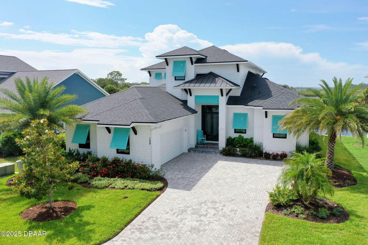 This house comes with a REDUCED RATE via SELLER BUYDOWN as of 1/27/2026 through List & Lock???. This is a seller paid rate-buydown that reduces the buyer's interest rate and monthly payment. Terms apply, see disclosures for more information. Welcome to luxury coastal living at its finest in Seaside Landings, Flagler Beach! This stunning canal-front home, nestled off the Matanzas River, boasts unparalleled craftsmanship and modern elegance. Step through the custom 8' iron-insulated double front door with 6' hurricane glass into a world of sophistication, featuring 8' interior doors, designer tile, and hurricane-proof windows and sliders throughout. The gourmet kitchen dazzles with Samsung Bespoke appliances, quartz countertops, quartz backsplash, and a large walk-in pantry with cabinetry. The primary suite is a retreat with a wet room showcasing a bubble tub, glass shower enclosure, and floor-to-ceiling mirrors with lighting and his and her walk-in closets. Upstairs you will find the second bedroom with a walk-in closet and balcony access and an additional loft bedroom that doubles as an office and could easily be converted to a traditional bedroom if desired. The loft bedroom, complete with a dry bar, bar fridge opens to a tiled balcony with a Pollywood daybed swing, aluminum/glass railing, and outdoor fan. Entertain effortlessly in the great room, highlighted by a linear fireplace, custom shiplap TV wall with shelves, and a complete home surround sound system with 13 indoor/outdoor speakers. The outdoor oasis includes a 30'x13' covered dock with seating, electricity, and fan hookup, a seawall, and an outdoor kitchen with a large Blaze grill, sink, and soapstone counter. Enjoy two automatic 18' lanai screens, four outdoor ceiling fans, and a paver driveway and lanai.Additional highlights include a Trane 15 SEER HVAC, a 2½-car garage with Shark-coated flooring, LiftMaster MYQ side-mount opener, slat wall storage, and a side door. A Florida basement with aluminum stairs, a 120' deep well, and extensive landscaping with two Sylvester palms enhance functionality and curb appeal. The home is equipped with a security system, custom Bahama shutters, electric plugs in soffits, and five hose bibs for convenience. With a custom stair handrail, balcony tile, and a garage storage closet, every detail has been meticulously designed for comfort and style. (Primary bedroom chandelier, primary bathroom chandelier and surround sound equipment do not convey). Don't miss this rare opportunity to own a masterpiece in Seaside Landings!