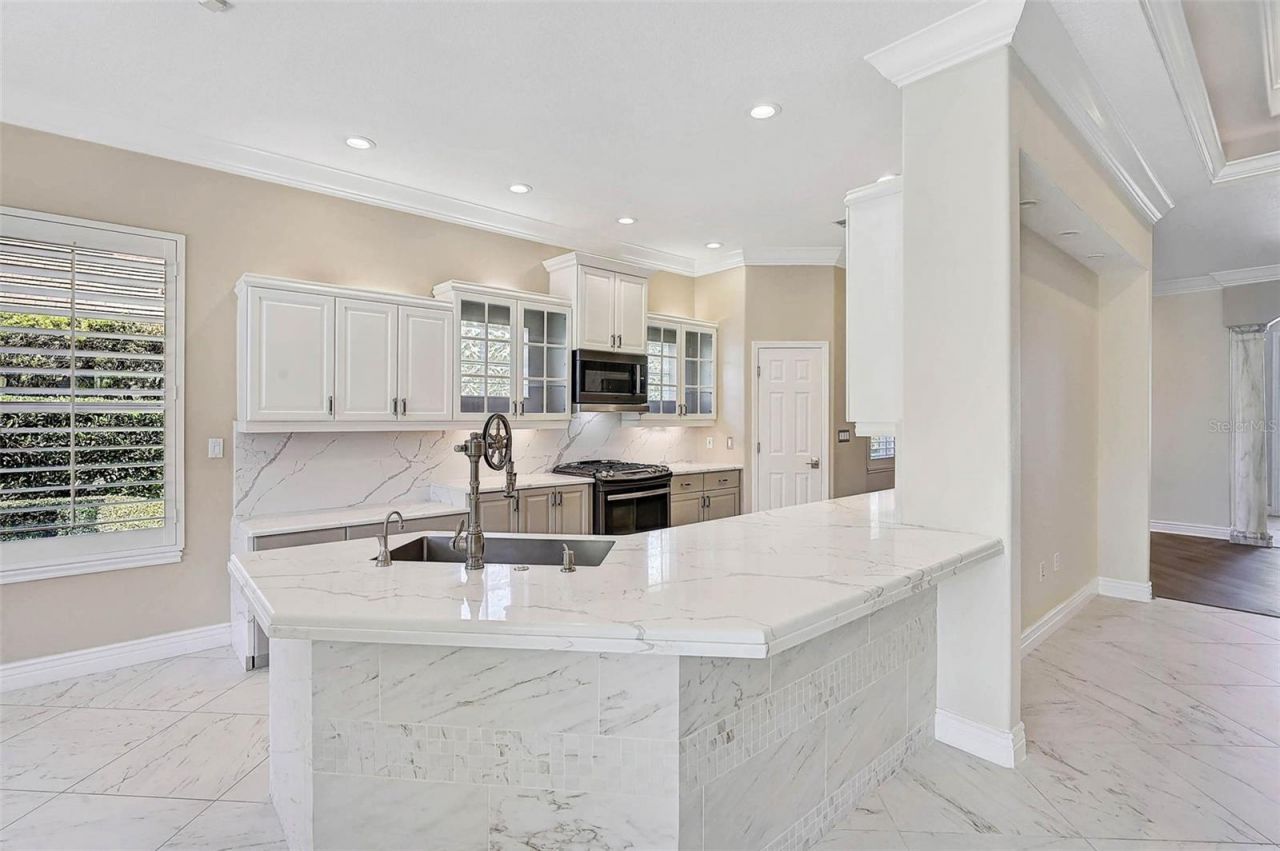 **IMPRESSIVE, MOVE-IN READY, POOL HOME in the Secure and Coveted OAKS PRESERVE, MAINTENANCE-FREE COMMUNITY** This residence boasts an open floor plan that is ideal for entertaining, along with a screened and spacious outdoor pool area that provides privacy and overlooks a nature preserve. Recent updates include a new kitchen, bathrooms, flooring, fans, a four-year-old roof, a newly pavered driveway, and hurricane-rated patio and bedroom doors. All living areas have wood floors or Italian porcelain tile. The kitchen features a gas stove, Waterworks faucet, quartz countertops, modern stainless appliances, and solid wood cabinetry. The breakfast nook adjacent to the kitchen has aquarium glass windows offering a view of the pool and foliage. The family room glass doors stack behind the wall, providing views of the pool and preserve, and they are hurricane-rated. The owner's suite includes two walk-in closets, a linen closet and space for a sitting area or office. Hurricane-rated glass doors overlook the pool. There is a separate study/office/bedroom with built-in wood cabinetry and space and wiring for a media room. The guest suite has an ensuite bath updated with Quartz counters and a vessel sink. Enjoy the utmost in outdoor living with a stunning, PebbleTec POOL with Travertine deck while there is ample space for a spa or additional seating within the spacious screened lanai. Connections for an outdoor kitchen are also available. A beautiful new pavered driveway adds that special curb appeal. In addition to the metal, roll down hurricane shutters, there is an electric hurricane protective screen spanning the lanai area to protect outdoor furniture. The extra deep two car garage affords additional storage options. A collection of unique bougainvillea and crepe myrtle rounds out the gardens. This lot is located outside the FEMA flood zone Bishops Court in The Oaks Preserve is a 24-hour guard-gated community with walking and biking paths. Additionally, there is a year-round heated community pool nearby. THE OAKS is a distinguished, 24hr Guarded, Country Club Community which boasts many accolades including: Platinum Club of America, Emerald Club of the World, Elite Distinguished Club of the World and One of America's Healthiest Clubs - where amenities include Three Restaurants, Ballroom, Two 18-hole championship GOLF courses, award-winning RACQUETS program with 12 Har-Tru Hydro-Grid TENNIS courts, 4 PICKLEBALL Courts, wonderful CROQUET facility, state-of-the-art FITNESS center and junior Olympic, heated community SWIMMING POOL, Bocce, Basketball Court, Playground and more! The Oaks is just minutes from nationally ranked Pine View School, the Legacy Bike Trail, area Beaches and all that Gulf Coast living has to offer. Membership is required and there is NO WAITLIST for GOLF or SOCIAL Membership. **PLEASE ENJOY VIEWING the 3D VIRTUAL TOUR**