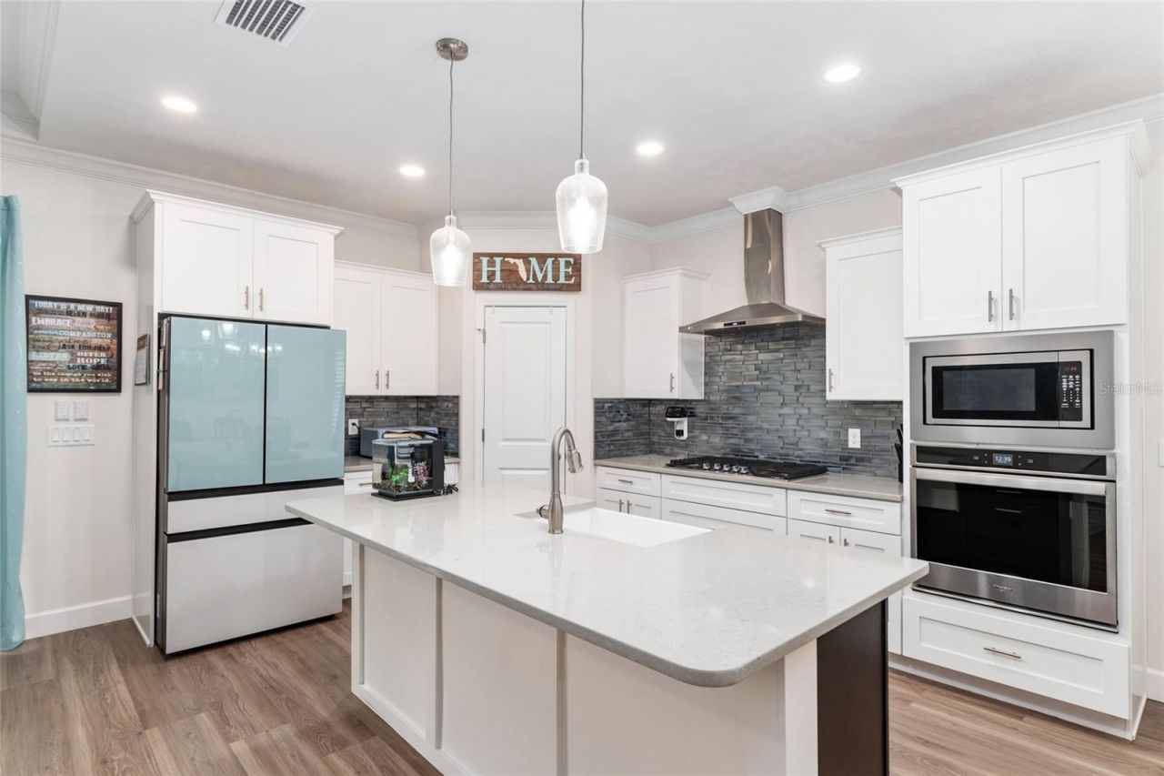 Welcome to Grand Oaks...where 10% of the homes are competing for your attention and all of them are basically cousins. And then there's this one. Built in 2022 by Weseman Homes & Renovations, this 4 BR, 2.5 BA, 1,871 sf home understood that if you're going to live in a neighborhood where the builders share DNA, subcontractors, and probably group texts, you better stand out. Let's address the elephant in the room: Yes-they all have Hardie board, stone accents, tankless gas water heaters, Low-E windows, radiant barrier, solid insulation, smart home systems, LVP flooring (no carpet anywhere because we're not monsters), tile in the bathrooms, zoysia grass, and Florida-friendly landscaping. We get it. Everyone's special. But this one? This one chose personality. It starts with the plantation shutters on the windows-not the faux blinds situation happening in most of the other homes. These are actual, grown-up shutters. The kind that say, 'Yes, I upgraded. Intentionally. Then there's the kitchen-where the new builds will hand you keys and say, 'Good luck buying a refrigerator. Not here. You get a Samsung Bespoke refrigerator, which sounds like it belongs in a luxury showroom and, frankly, does. The layout hits all the expected highlights-open concept, natural light, high ceilings, tray ceilings, quartz countertops, gas cooktop and hood vent, wall oven, soft-close cabinetry and tile backsplash-but here's the thing: it all works together without feeling like it was copied and pasted from the same blueprint 300 times. The owner's suite delivers what about half the neighborhood has-but you'll still appreciate it more here: dual shower heads (because sharing one is a lifestyle choice), a walk-in shower, double sinks, and a wood closet system that doesn't require a post-closing trip to a container store intervention. Out back, you're part of a slightly more exclusive club: Not all of homes have the 17 ft covered porch, and yes-you're in it. So instead of staring at your backyard wondering why yours is so tiny and blocked in with a screen, you'll actually use it. The yard? Fully fenced (like ~85% of the neighborhood, but still essential), PLUS irrigation in the front, back, AND sides-which barely anyone else has and you can't even get in the new homes in phase 3. So while others are out there with a hose in July questioning everything, you'll be sipping coffee in you AC...not sweating in the Florida heat. And because this is a Weseman build (which, let's be honest, that's the entire neighborhood), you also get the integrated smart home system controlling your thermostat, garage, locks, and doorbell-because walking across the house to adjust temperature is clearly outdated behavior. Location? You're about 3 miles to the University of Florida and UF Health Shands, close enough to be convenient, far enough to avoid feeling like you live in a parking garage. Minutes to Butler Plaza (where errands are shortened), Celebration Pointe (yes, we've all heard the unfortunate news, but somehow Spurrier's still delivers like nothing happened), and Sweetwater Preserve when you decide to reconnect with nature or at least pretend to. So if you've been touring Grand Oaks thinking: 'Didn't I already see this house? You probably did. But you didn't see this version-the one with the right upgrades, the better finishes, the colorful refrigerator, and fewer future projects disguised as opportunity.' And don't forget, use TB Bank for their $10K closings costs!