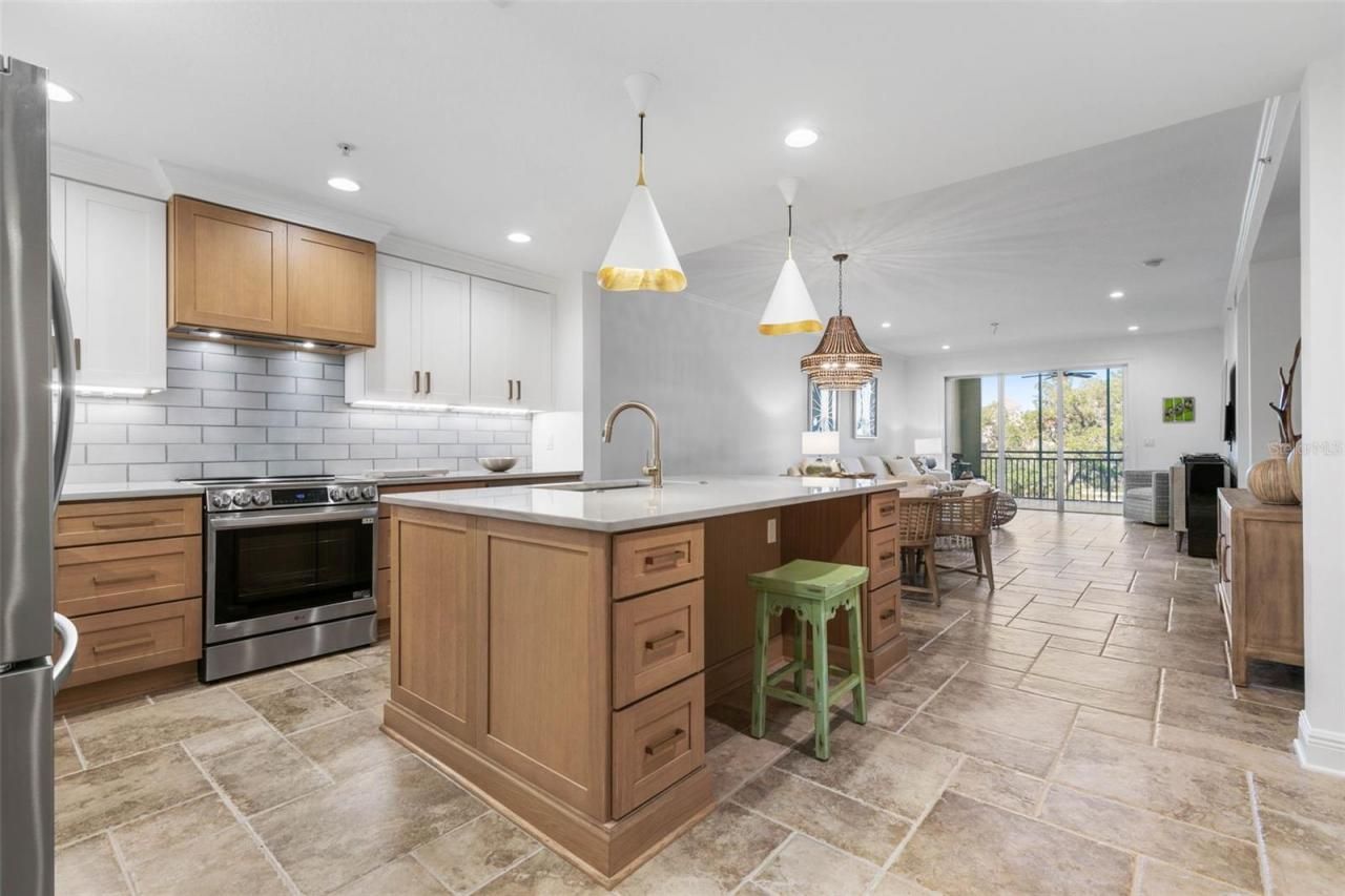 Welcome to #409 at 146 Palm Coast Resort, an exquisite residence that perfectly blends luxury and comfort with direct Intracoastal views. This 3-bedroom, 2-bath condo has been beautifully renovated with top-of-the-line interior finishes and all impact windows. No corner was cut in this full renovation-from all new custom closets throughout by Closet Design, to crown molding, baseboards, doors and door casings, hardware, and door handles. The home also features a brand-new whole-house water filtration system, offering enhanced water quality and peace of mind.The laundry room includes custom built-ins for easy organization and a brand new full-size stackable washer and dryer. The true showstopper is the all-new kitchen, featuring brand new solid wood cabinets, stunning quartzite countertops, tile backsplash, under-cabinet lighting with hidden outlets, and custom pendant lighting. A large island with drawer stacks on both sides provides a great space for meal prep or working from home. The kitchen is complete with high-end stainless steel appliances including a counter-depth fridge, induction range, three-rack dishwasher, and a microwave drawer-all accented with satin brass hardware and elegant triple crown molding.Gorgeous travertine-look tile runs through the main living areas, while all bedrooms have been upgraded from carpet to stunning white oak hardwood flooring-not LVP. The primary bathroom has been completely redone and offers a spa-like retreat with quartzite countertops, a freestanding soaking tub, custom mirrors, and a walk-in shower with floor-to-ceiling tile.Custom blinds add the finishing touch throughout. Step out onto your oversized screened lanai from the living room or primary bedroom and enjoy peaceful Intracoastal views and a lush, park-like setting with mature oak trees. Ideally located next to a scenic 1-mile walking path that runs along the Intracoastal, this residence offers the perfect blend of luxury living and an active waterfront lifestyle.