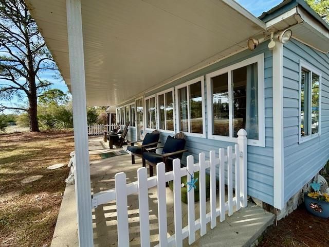Nestled beneath the pines, the beautifully updated 1942 cottage blends vintage charm with modern comfort! Expanded in 2001, the home now boasts over 2,000 sq. ft. of additional living space including a vaulted great room, roomy master suite with ensuite bath, and separate office--all with stunning bay views. A screened porch and huge open deck run the length of the home and are perfect for enjoying the bay breezes. The original portion of the home exudes warmth with rich knotty pine floors, walls and ceilings. It includes a large sunroom, dining area, kitchen, two cozy bedrooms, a bathroom, a laundry room and covered front porch. Unlike newer homes, this cottage offers the ease of single-level beach living. This home has been loved and cherished by the same family for over 60 years and its rare .75-acre bayfront lot includes a private deeded easement to the beautiful sandy white beach--giving you the best of both bay and beach access. Additional highlights include a private dock, workshop, screened fish house with storage, outdoor shower, two carports and a partially fenced rear yard. Alligator Point is a secluded coastal haven with Alligator Harbor designated as an aquatic preserve. Here, you can walk for miles on the beach embracing the peace and tranquility of this hidden gem. Don't miss the opportunity to own a piece of this rare and special retreat.