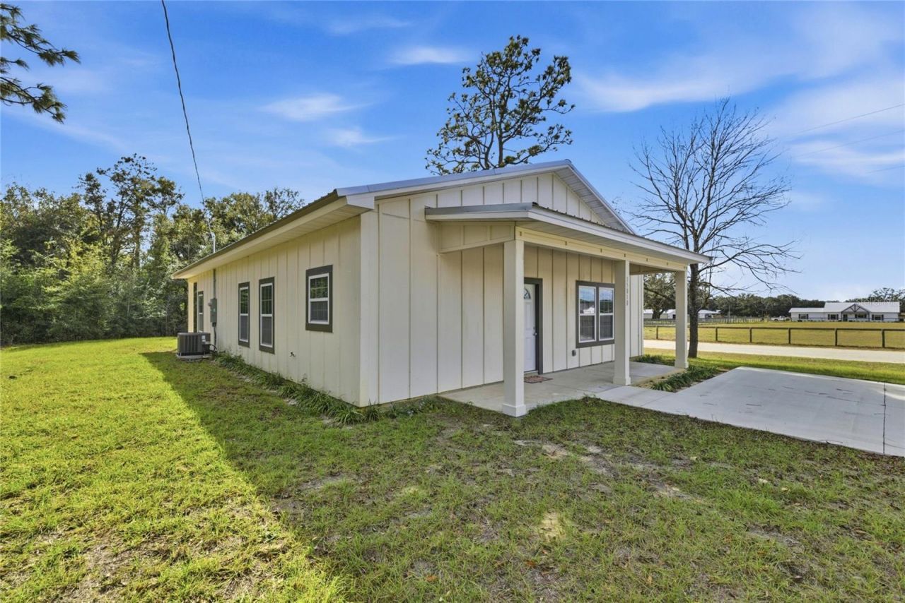PRICED JUST REDUCED TO 300K....GREAT PRICE!! NEW CONSTRUCTION! CORNER LOT WITH PAVED ROAD! 3 Bedroom and 2 Bathrooms. The Master bedroom has French doors opening out to the back porch. The master bedroom has his and her wallk in-closets. Living room, Kitchen and Dining room are open concept with high ceilings and one exposed truss for a country style appearance. The Kitchen cabinets are solid wood and soft close. The ceilings in the living room, kitchen, dining room, front and back porch have tongue and groove Pine wood which are gorgeous. Stainless steel Refrigerator, Range, Microwave and dishwasher. Laundry room has a Washer and Dryer and Electric Hot Water Heater. Vinyl flooring through out! New Well and Septic and sod with plants surrounding the house. The outside walls are made of Hardie board and batten siding, made from fiber cement, a durable composite of cement, sand, silica, and cellulose fibers, designed to mimic wood but resist moisture, pests, and fire, providing a low-maintenance, long-lasting exterior with a classic look. The roof is metal lasting over 30 years. Just minutes to the charming town of Williston for shopping, dining, schools and only 30 minutes to HITS, WEC, Ocala, Gainesville and Bronson which is our county seat! Beautiful pastures across the street for a great scenic view. High and dry and no HOA. This is a beautiful home, ready to move in!! Schedule a viewing today!