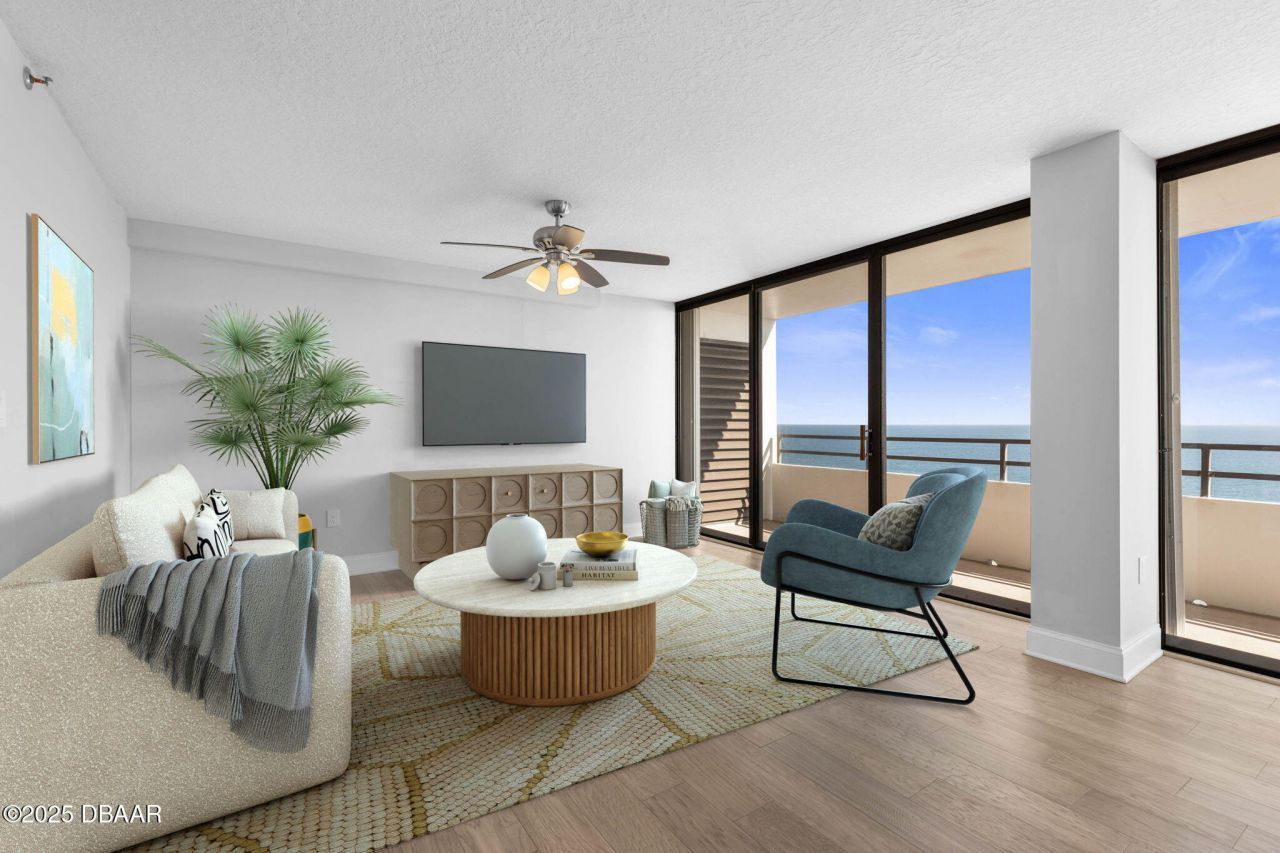 Rising above the shoreline, this 11th-floor corner unit at the Aliki offers panoramic views of both the Atlantic and Intracoastal. The elevator opens directly into your private entryway, leading to an airy, modern layout wrapped in glass with continuous balconies. Walls of sliders open to an impressive wraparound terrace with two covered outdoor lounges"perfect for enjoying ocean sunrises and river sunsets. Inside, the kitchen features granite counters, stainless appliances, and a breakfast bar. The primary suite enjoys private Intracoastal views and balcony access, while the spacious second bedroom easily fits a king bed or works beautifully as an office. Storm shutters, window treatments, and a full laundry room provide convenience and peace of mind. Includes a reserved garage space and private storage. Monthly fees cover water, sewer, cable, internet, building insurance, and exterior maintenance.