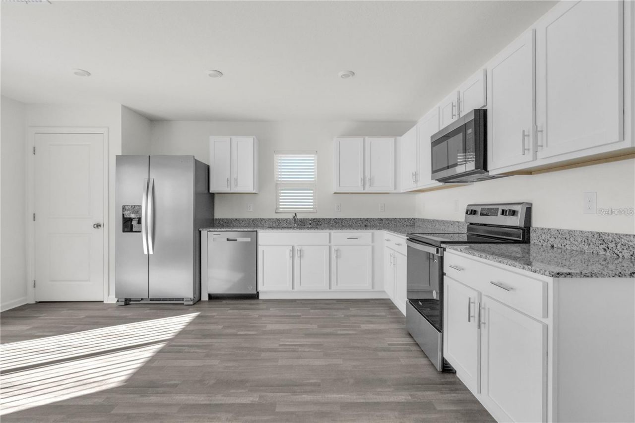 This beautiful 3/2.5 home has granite countertops, 30 cabinets, stainless steel appliances, modern vinyl flooring and carpets in the bedrooms. 2 car garage. Community has a pool with a cabana. Washer & Dryer included! Some upgrades include...sliding glass doors in the bath tubs, curtain rods in all windows, kitchen cabinet/bathroom cabinet handles and a remodeled master bathroom! Must see to appreciate. Don't miss the opportunity to rent this beautiful home today!