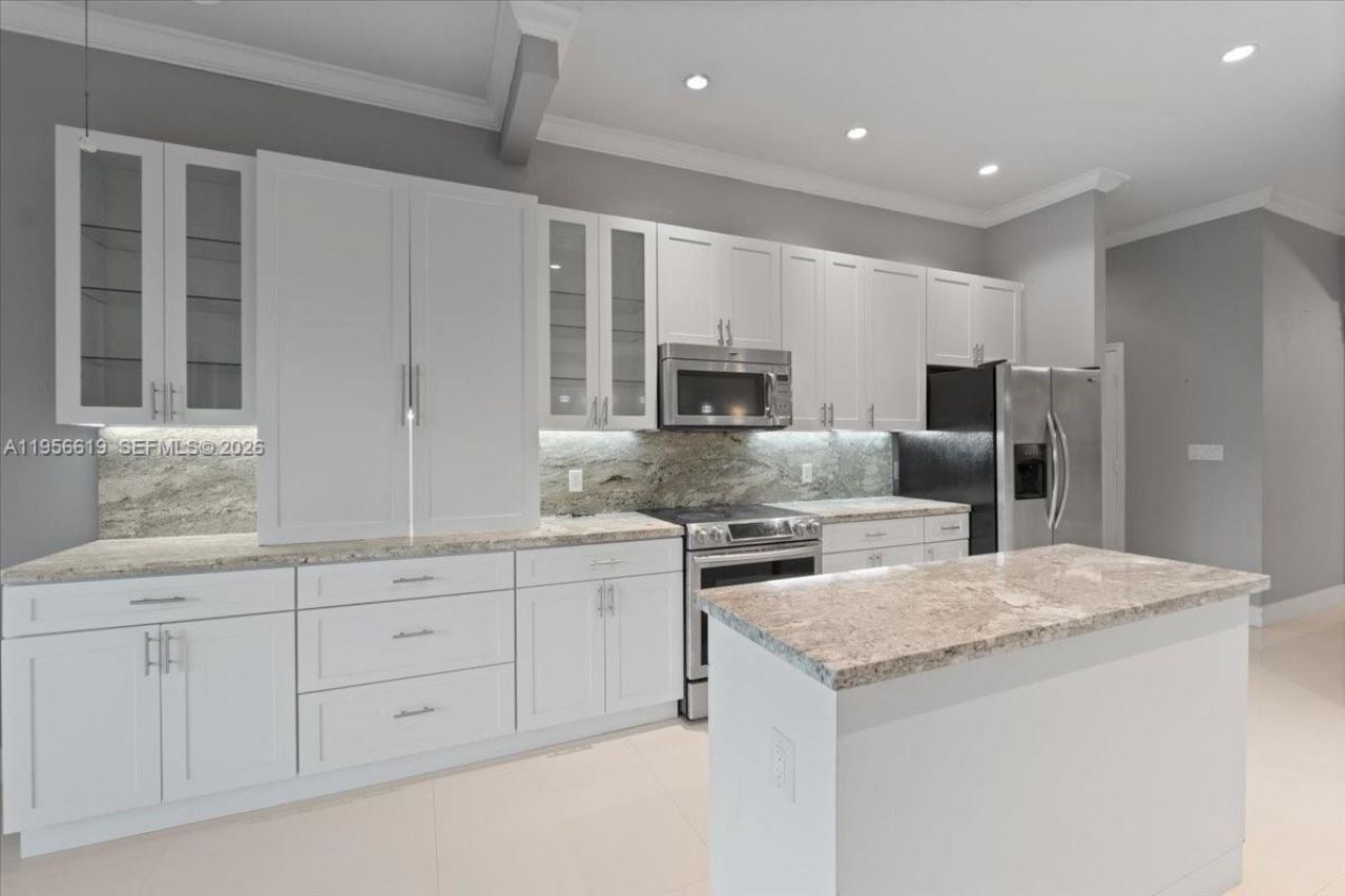 Welcome to this refined 4-bedroom, 3.5-bath estate offering a thoughtfully designed multi-generational layout in the prestigious Royal Oaks community of Miami Lakes. This exceptional residence features two expansive primary suites with private en-suite bathrooms, including a secluded in-law suite positioned on the opposite wing of the home?ideal for extended family, long-term guests, or independent living with complete privacy.From the moment you enter, youre welcomed by bright, open living spaces designed for both elegant entertaining and everyday comfort. The beautifully remodeled kitchen showcases modern custom cabinetry, quartz countertops, and generous prep space, creating a sophisticated yet functional heart of the home.The split floor plan enhances privacy while maintaining a seamless flow throughout. Step outside to a covered patio and private fenced yard, perfect for outdoor dining, weekend gatherings, or quiet evenings under the South Florida sky.Situated on a quiet, tree-lined street near top-rated schools, parks, shopping, and major highways, this move-in ready home combines flexibility, comfort, and timeless value in one of Miami Lakes most sought-after communities.