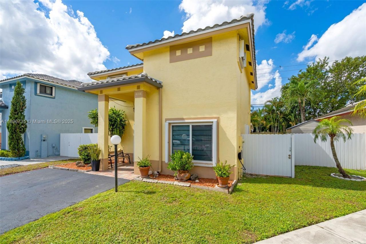 Welcome to your dream home in the gated community of Monterrey, located in Miami Gardens! This beautifully upgraded 3BD/2.5BA residence features a bright, organized layout where every space is perfectly placed for comfort and family living. Major updates include a 2022 roof, impact windows with shutters, a mahogany double front door, 2023 A/C, 2020 water heater, a 2022 kitchen with stainless appliances, and a freshly painted exterior (2023). Inside, youll find new carpet, a walk-in tub, custom closets, modern lighting, and curtain blinds. Enjoy a covered patio with new roof and flooring, fenced yard (2025), storage shed, electric chair lift, and washer/dryer. The community offers security, pool, and lawn maintenance with a low $110 HOA. Elegant, modern, and truly move-in ready!