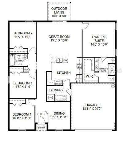 Under Construction. The ROYAL floor plan has four bedrooms, two full bathrooms, a two-car garage, and 1,806 square feet of living space. The great room is spacious and accommodating. A beautiful walk-around island is conveniently located between the great room and the kitchen making it a gathering place for both rooms. Three bedrooms are on one side of the home and the owner's suite is on the other side. The ROYAL comes with one full year of builder's transferable warranty coverage and a 10-year limited structural warranty. Home includes a covered rear porch, tile flooring in the common areas and quartz counters in the kitchen.