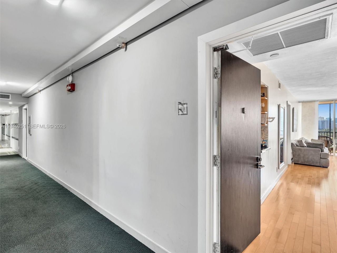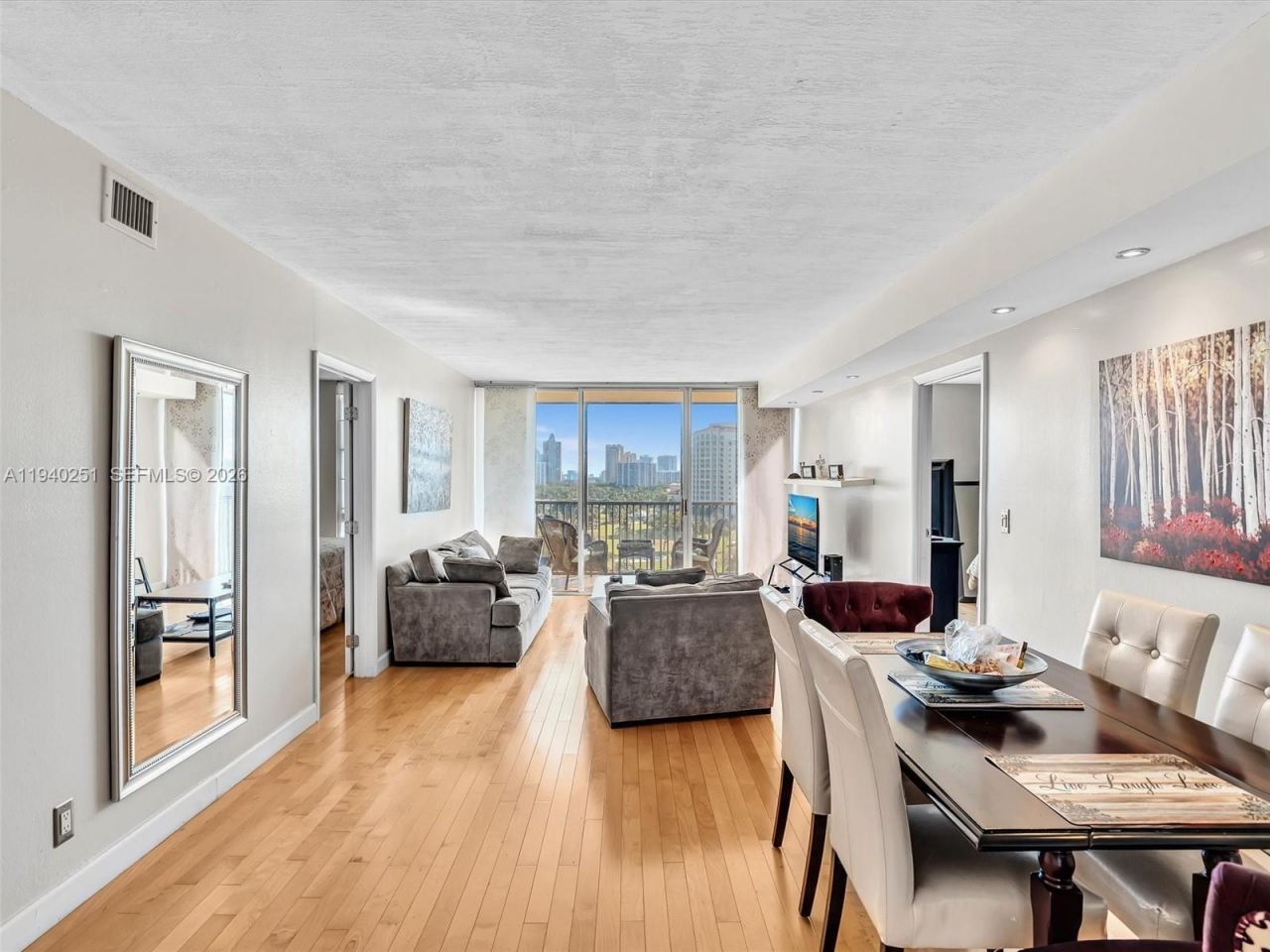 This elegant remodeled 2bed/2ba unit floats above Turnberry Golf Course and displays matchless views of the coastal skyline. Enjoy this priceless vista from an ample balcony. Wood floors in living areas. Floor to ceiling windows in bedrooms. Stainless steel appliances. Prime Aventura location: walk to to the Mall and top rated restaurants. Excellent schools. Close to beach. Coronado is surrounded by the 3 mile long Don Soffer exercise trail. Easy access to Brightline, highways and airports. Complex offers heated pool, jacuzzi, sauna, gym, 24 hour security, assigned covered parking and plenty of guest parking. Current Special Assessment $131.37/month to be assumed by buyer after closing. AS IS.