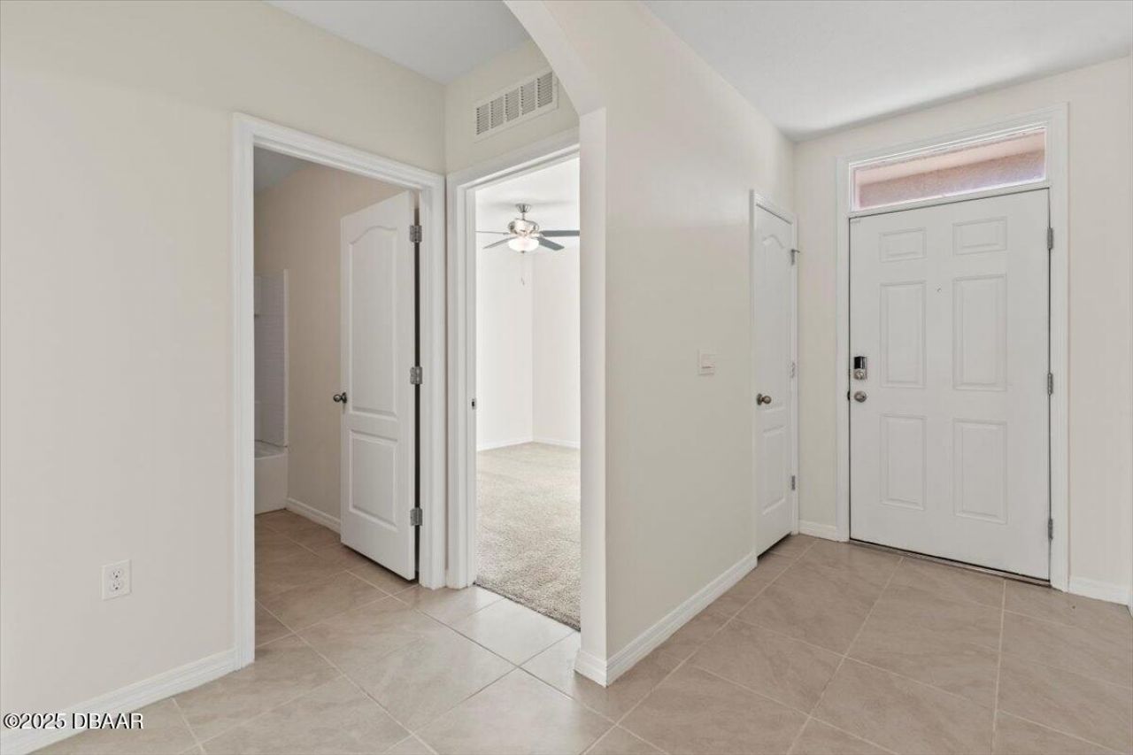 Welcome to 205 Old Mill Pond Road in Edgewater's beautiful Woodbridge Lakes community. This 2021 D.R. Horton Cali model features 4 bedrooms, 2 bathrooms, and a 2-car garage, offering plenty of room for the whole family. Solid concrete block construction provides lasting strength and peace of mind that comes with a newer build. The interior shines with bright natural light and fresh neutral paint throughout. Every ceiling, wall, baseboard, door, and trim has been professionally repainted with top-of-the-line paint, and the entire home has been cleaned and maintained toperfection. The generous backyard is fully fenced with white PVC privacy fencing, ready for kids, pets, or weekend gatherings. Inside, you'll find stainless steel appliances, a spacious kitchen pantry, an indoor laundry room, and a convenient coat closet in the foyer, with every detail thoughtfully designed for comfort and functionality. Enjoy super low HOA fees, low homeowners insurance, and no flood zone or flood history. You're just minutes from beaches, the Intracoastal, theme parks, airports, cruise terminals, schools, medical facilities, dining, and shopping. Bright, neutral, and beautifully maintained, this home is ready to welcome its next family just in time for the holidays. The VA loan is assumable, details available upon request. All information obtained from the tax roll, floor plan, and seller and while deemed reliable, cannot be guaranteed.