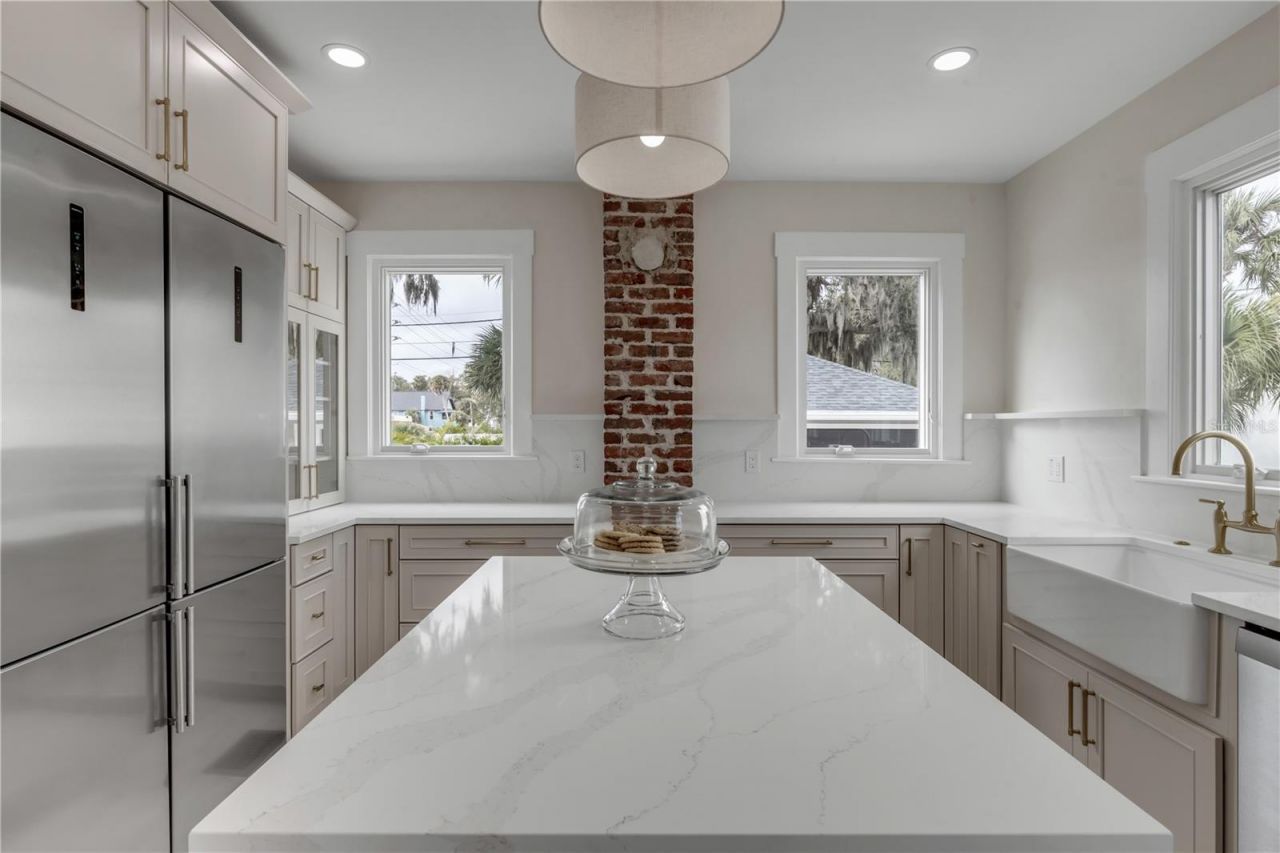 Historic Riverfront Gem - Modern Luxury in the Heart of New Smyrna Beach. Step into a piece of New Smyrna Beach history with this beautifully preserved 1958 riverfront home artfully updated for today's modern lifestyle. Formerly the ACA Harris House, this four-story residence blends timeless craftsmanship with elegant contemporary design.Original refinished hardwood floors flow throughout this one of a kind four story residence. This home has been completely revitalized from top to bottom. Updates include a yr 2025 roof, HVAC system, plumbing, gas, 200-amp electrical service, impact-rated windows, a modern kitchen featuring premium Bosch appliances w/ a dual energy oven, master suite with bath and so much more. Every detail has been carefully considered - from the luxury-finished bathrooms and lighting to the handcrafted workmanship of the doors and window frames. This thoughtful layout includes a full basement with abundant storage, a spacious main living level with a welcoming sun porch and fireplace, four bedrooms, and a top-floor speakeasy complete with a full bar, wine racks, and cozy seating - perfect for entertaining or relaxing with river views. Additional highlights include a roomy two-car garage, porte-cochere, and yr 2025 concrete driveway. Large covered front porch for enjoying the coastal breeze, a sprinkler system, with room for a pool (drawings available) add even more value.Nestled in the Mixed-Use District, this property offers incredible flexibility - ideal for a primary residence, Airb&b, (bed & breakfast), or even a personal art gallery this is living space combined for exceptional Urban living. Why not have the best of both worlds? Enjoy tranquil river views, historic oaks, breezes off the Intracoastal waters, and old Florida charm, all within walking distance of Canal Street's boutique shopping, dining, and vibrant art events. This rare offering perfectly captures the essence of historic New Smyrna Beach living - where classic architecture meets modern comfort and creative opportunity. This is a wonderful opportunity to own a true riverfront masterpiece in one of the area's most desirable and dynamic neighborhoods. Come see today...