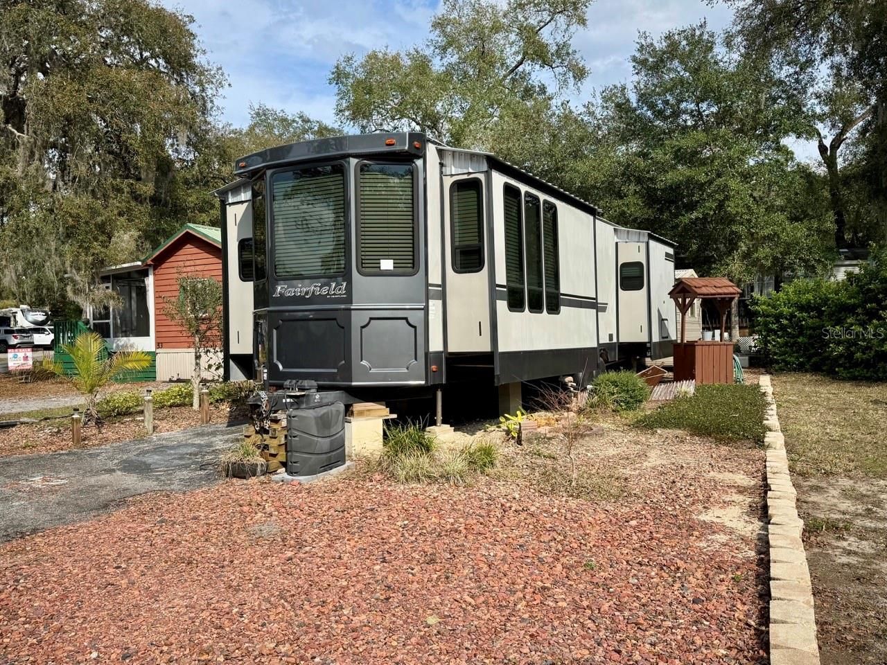 A 2017 Fairfield RV with a 14x22 open deck is situated on lot #52(3,049sqft) in the Salt Springs Resort. The unit has a new refrigerator, gas range, pantry, island with double sink, new queen mattress, bathroom w/ walk-in shower, and a storage building with washer and dryer. All furniture to remain with unit. The resort offers a clubhouse, two pools, hot tub, tennis courts, dog park, dock & boat ramp to Little Lake Kerr. Walking distance to restaurants, shopping, and the springs. Perfect for weekends or full-time residence. The HOA fee is $706 a quarter. Salt Springs is a nice, quaint area located in the Ocala National Forest.