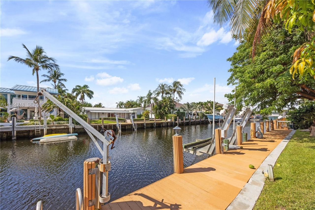 This beautifully updated 3-bedroom, 3-bath waterfront home was fully reimagined four years ago, including plumbing, electrical, insulation, and a new roof completed in 2023. The chefs kitchen features Sub-Zero and Wolf appliances, quartzite countertops, a custom walk-in pantry, and a dedicated laundry room. Additional highlights include impact-resistant windows and sliding glass doors, solid-core interior doors, and neutral luxury vinyl flooring throughout. The primary suite opens to the pool, patio, and garden, creating a private retreat. Enjoy 80 feet of waterfront with no fixed bridges, direct ocean access, and a 14,000-pound boat lift, all just minutes from the Hillsboro Inlet- an ideal setting for boating enthusiasts.