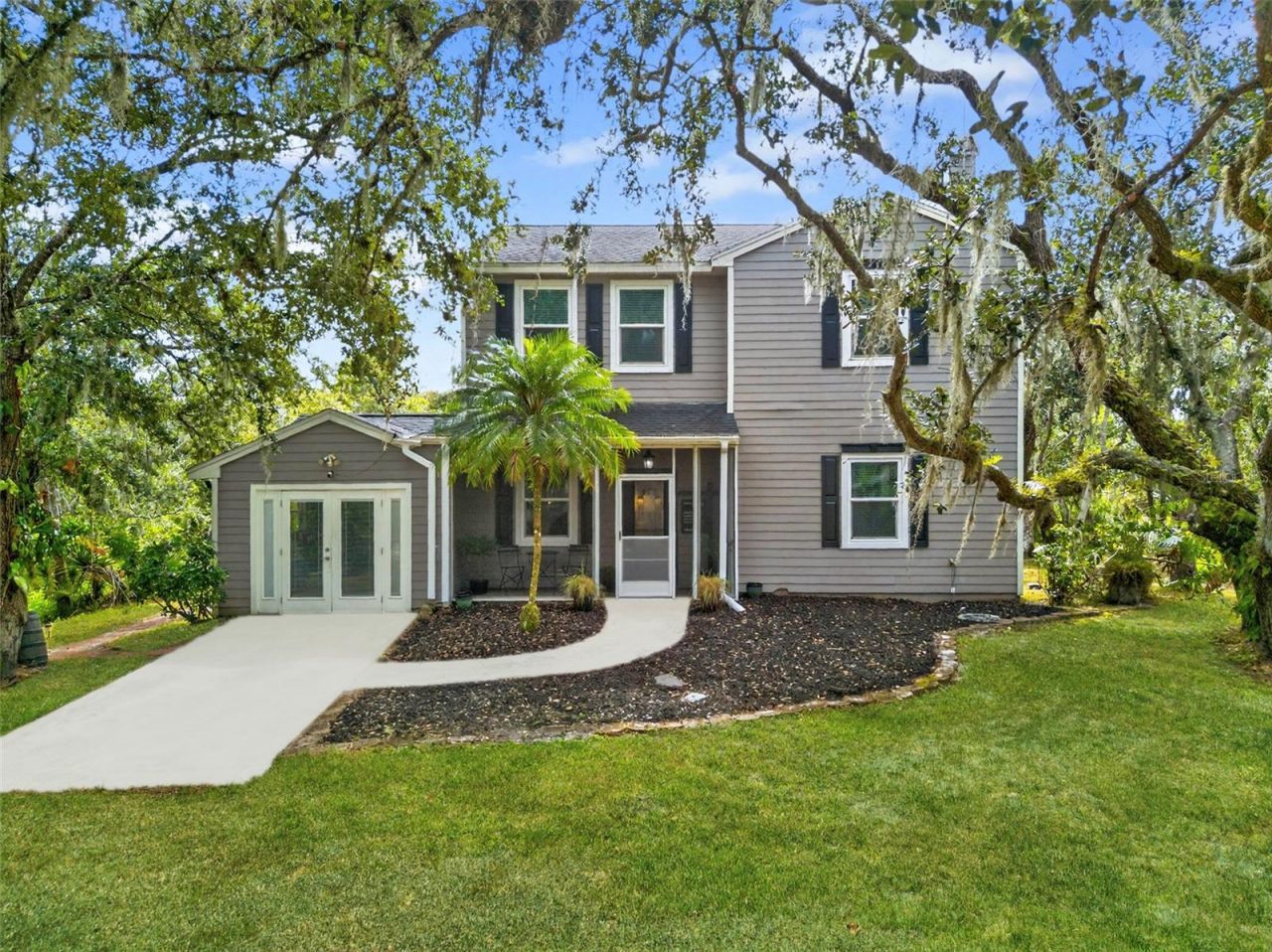 Welcome to your private Florida sanctuary, a serene escape with effortless access to urban life. Tucked away on 2.23 acres of lush, natural landscape, but just minutes to Lakewood Ranch, this 3-bedroom, 2.5-bath residence offers the perfect blend of refined living and serene seclusion. The tranquil creek winding through the property and native wildlife add to the home's rare sense of retreat.Renovated to perfection, the interior showcases sophisticated finishes throughout - including luxury vinyl plank flooring, quartz countertops, and custom built-ins framing an active, stone-clad wood-burning fireplace. The expansive primary suite is a true haven, featuring dual custom-organized walk-in closets and a spa-inspired bathroom with a skylight that bathes the space in natural light.Outside, the setting is nothing short of breathtaking. Thoughtfully designed spaces invite relaxation and connection to nature - from the fountain-view sitting area and charming footbridge spanning the creek, to the grand patio ideal for alfresco dining or morning coffee amidst the sounds of nature.Beyond the main home, the property includes three additional structures: two storage sheds and a versatile outdoor workshop featuring two climate-controlled rooms.Ideally located just ten minutes from Lakewood Ranch, this home harmonizes the tranquility of country living with easy access to modern conveniences. Notable updates include: 2019 impact windows, 2020 roof, 2022 A/C systems, 2024 septic, and 2024/25 well and pump.If you're looking for a peaceful hideaway that keeps you connected to city energy, this is the perfect home for you.