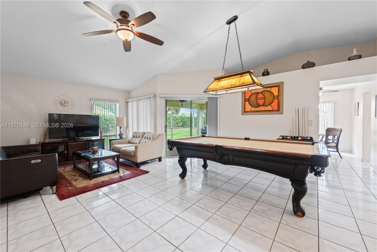 Charming 3 bed, 2 bath home in sought-after Keys Gate No. 1! Corner lot. Features include a bright living room w/fan & blinds, formal dining, and a versatile 3rd room/den. Eat-in kitchen with dark wood cabinets, SS appliances, and patio access. Spacious master suite offers walk-in closet, private bath w/dual sinks & shower. Guest bed w/walk-in closet, full bath w/tub/shower. Tile floors throughout, laundry room w/cabinets, 2-car garage with storage. Enjoy outdoor living with a screened patio, fenced slab area, and accordion shutters.