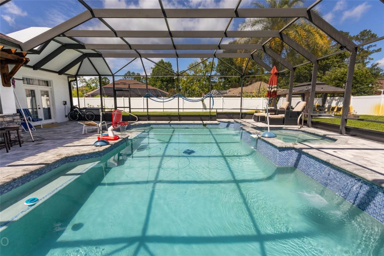 One or more photo(s) has been virtually staged. Stunning Florida style living with outside oasis. Paver walkway leads you into this beautifully maintained home. Recently painted inside and out. Spacious open floor plan with new marble floors, 10' ceilings. The updated family room boasts built in shelving, stone accents wall with built in electric fireplace. French doors lead to the outside living and pool area which is loaded with custom features. Summer kitchen with granite countertops, automated retractable screens, fireplace with chimney, outdoor shower with hot and cold water. The beautiful pavered pool deck has built in lighting. The oversized back yard has a shed, outdoor firepit, and more paver walkways. Inside has 4 bedrooms, office, plus bonus room which can be used for fitness equipment, crafts, or a den. 3 full baths including a pool bath. and 3 car garage. Kitchen boasts 42 upper cabinets, double wall oven, 5 burner gas range, stainless steel appliances. New roof in 2021. LED lighting throughout. This home sits on a 17,000 s.f. lot and located in Cypress Knoll. Vacant and ready for quick sale!