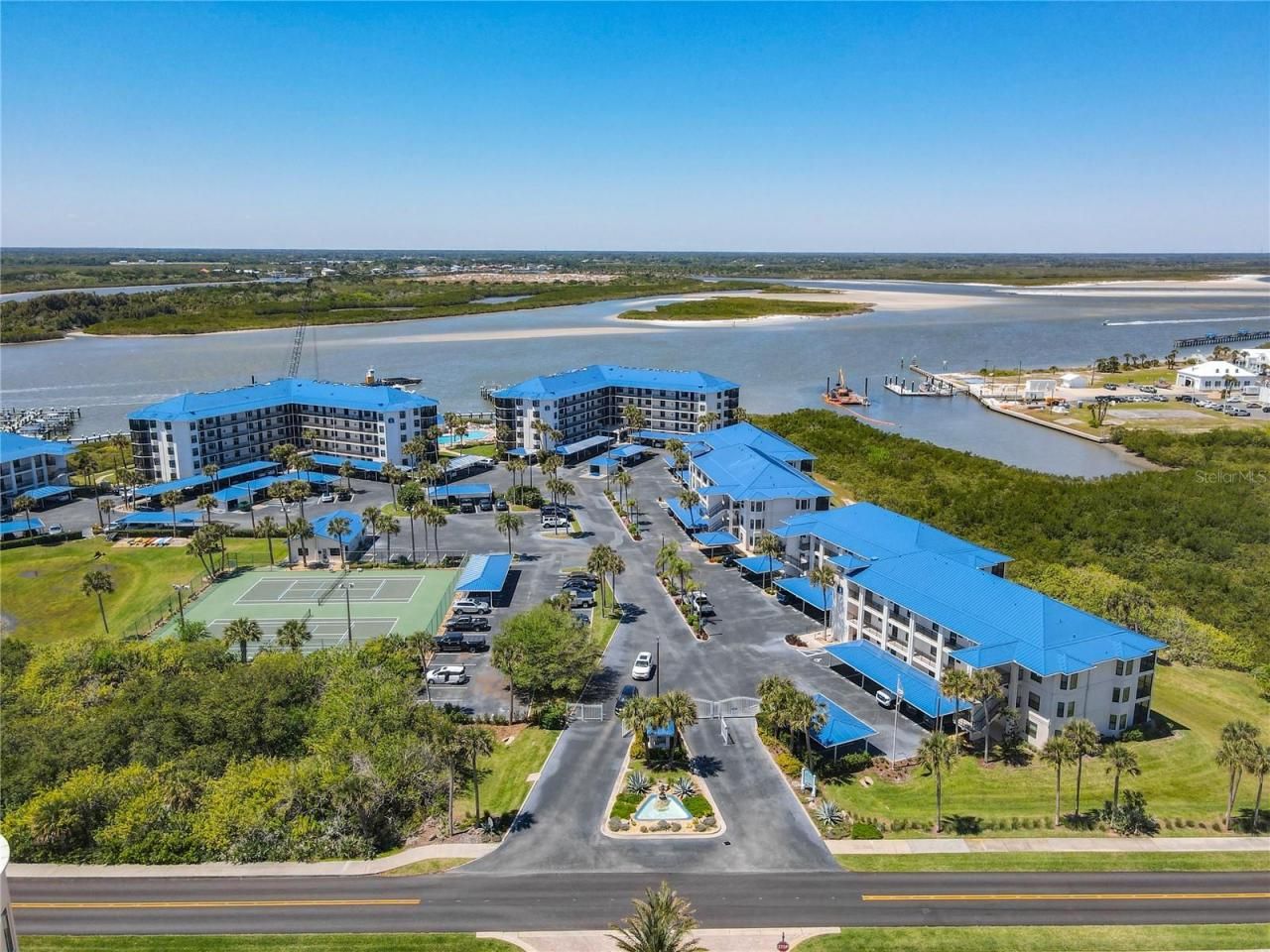 Price reduced bring offers!!! Enjoy coastal living from top floor corner unit in the most pristine, picturesque gated community of Inlet Marina Villas located on the quiet unspoiled northern point of NSB. This private community offers the most spectacular Intracoastal views of Ponce Inlet lighthouse, Disappearing Island and the Coast guard station along with amazing water views for miles and breathtaking sunsets. This 3rd floor unit boasts 9' ceilings, panoramic water views from the 24' covered and screened balcony and is an end unit for additional privacy and more east facing views. Completely furnished and totally turn key, unit comes fully equipped for rental or owners immediate occupancy. The spacious unit has split bedrooms and an open floor plan that seamlessly blends with the expansive views and natural light. Roof was replaced 2023, new impact glass windows added 2022, laundry area inside of the unit for convenience. Walk to the beach and enjoy the amenities and gated access of Minorca just across the street. Bring your dog along to this pet friendly community and let them romp on the adjacent dog beach at the spectacular Dunes Park just steps away. The marina offers slips for rental by reservation which include electric, water and 2 fish cleaning stations. Enjoy the outdoor resort style living with a club house, heated pool, tennis & pickle ball courts, riverfront outdoor kitchen with gas grills, fire pit, rest rooms and kayak storage. This unit includes an assigned covered parking spot located close to the elevator of the building along with plenty of guest parking. Just a quick golf cart ride away is the famous Flagler ave. offering many restaurant, shopping and entertainment options. Come make this waterfront oasis your new home or weekend getaway. Milestone report completed in January. Both sliders replaced with impact glass 2025 and new complete A/C unit 2025.