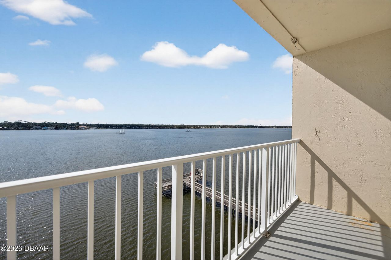 Move in ready! BRIGHT and sunny 6th floor corner end unit with 2 Bedrooms and 2 full baths! DIRECT RIVERFRONT with outstanding views! You will be amazed by the breathtaking sunsets & sweeping views of the intracoastal waterway, 2 fishing docks, gorgeous SUNSETS! Sit on your nicely sized balcony and watch the yachts sail by and the dolphins play endlessly! This unit has so much new! Brand new 2026 HVAC system, all upgraded impact windows (except kitchen window which doesn't face outward)Recently updated bathrooms and remodeled kitchen with granite countertops. Riverside Condo is a desirable Beachside Condo complex with MANY Amenities including 3 pools (two of which are heated), 2 fishing Docks, 4 on site laundry rooms, shuffleboard courts, clubhouse/Rec Room, meticulously manicured grounds and DIRECT riverfront walkway for you to enjoy!Located just 4 blocks from ''The World's Most Famous Beach'' Daytona Beach. Walking distance from Publix supermarket, shopping and restaurant