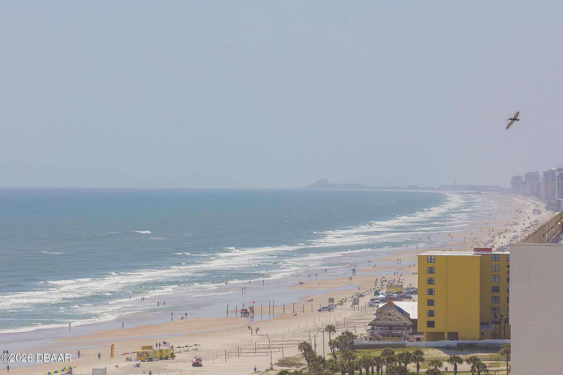 Invest in fantastic summer vacations for your family while enjoying the potential for steady income production at Ocean Walk Resort in Daytona Beach. This direct oceanfront, turn-key condo allows daily rentals providing flexibility year-round for both investment and personal use. Panoramic beach views set the daily scene from the balcony and living room while inside you will find upgraded wood-look porcelain tile flooring and an open kitchen featuring granite counters. At Ocean Walk Resort owners and guests enjoy an array of community amenities such as an indoor and outdoor swimming pool, a tiki bar, an arcade, a fitness facility, a traffic-free section of beach, and much more. Don't miss your chance to own a beautiful beach escape at this popular resort destination.