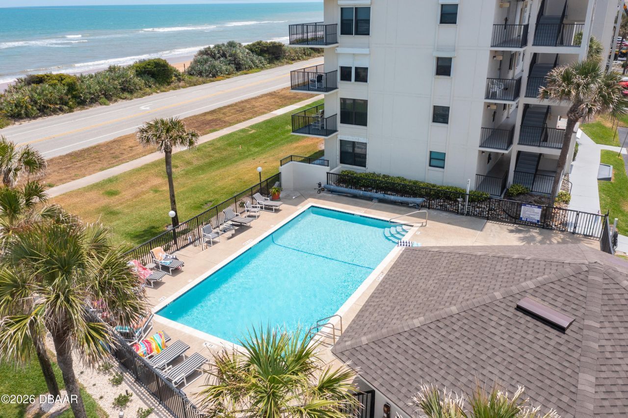 Welcome to Ormond Beach & the Seabridge South Lifestyle! Enjoy coastal living in this pet-friendly, ground-floor 2-bedroom, 2-bath condo with ocean views, just steps from the beach. Completely remodeled in 2022 with polished concrete floors, plantation shutters, shaker cabinets, granite countertops, and updated baths. Hot water heater and appliances are from 2022, and the A/C was replaced in 2023.The property also offers strong rental potential for those seeking investment opportunities. Association dues include cable, Wi-Fi, water, sewer, pest control, grounds maintenance, pool maintenance, and comprehensive building insurance.Furniture is negotiable, and the unit offers convenient inside laundry. Relax at the heated ocean-view pool or take the nearby walkovers to the quiet, no-drive Ormond Beach. Steps from dining at Lagerheads and close to Bicentennial Park with tennis, basketball, and new pickleball courts.