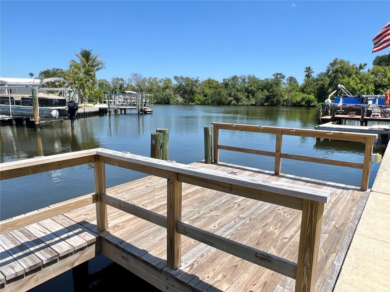 New lower price on income-producing property! Waterfront property! Rental agreement in place until June 14, 2027. PROPERTY HIGHLIGHTS: Almost 1,000 sq ft of living space overlooking beautiful wide saltwater canal to Tampa Bay with no bridges. The 2 bed/1 bath home with large dock has been remodeled and includes new kitchen with custom cabinets, new stainless appliances including gas stove, granite countertops and large island to enjoy the views! Large bath with walk-in shower. 2025 luxury vinyl flooring throughout. 2025 mini split and window A/Cs. Attached utility shed with washer and dryer. Transferrable flood insurance policy paid through November 27, 2027. RENTAL INCOME of $1650 per month to June 14, 2026, then increases to $1700 per month to June 14, 2027. COMMUNITY INFORMATION: Home is located in the premiere 55+ community of Americana Cove located only 10 mins to downtown St. Petersburg, minutes to 4th St. shopping, grocery and restaurants and 15 mins to two airports. Monthly maintenance fee of $380 includes water/sewer/trash/lawn mowing/24 hr manned gate/private streets/seawall maintenance and all amenities including heated pool, clubhouse, fitness center, billiards, two private boat ramps and kayak launch and so much more! Price includes share for the lot and ownership in the co-op. Management requires background/credit check. Proof of funds with contract. This is the investment opportunity you have been searching for!