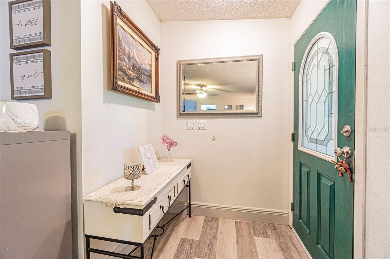CLASSIC Brick and Wrought Iron Entry Welcomes you to this beautifully maintained and thoughtfully updated 4-bedroom (PLUS Office/Den), 3-bath home offering 2,008 square feet of comfortable living space on a fenced 1.11 acre lot in a serene, park-like setting. From the moment you arrive, the charm is undeniable... beginning with a rocking chair front porch overlooking front landscape and a leaded glass front door that sets a warm and welcoming tone. Step inside to a light, bright, and open floorplan featuring luxury vinyl plank flooring throughout (2021) and a spacious split-bedroom layout that offers both functionality and privacy. The expansive gathering room IS OPEN and connects to the kitchen, making it ideal for entertaining family and friends! The kitchen boasts a large center island, updated Stainless steel appliances, white and gray two tone cabinets, undermount sink and eat in dining space. A cozy wood-burning fireplace anchors the living room, creating a perfect spot for relaxing evenings. The primary suite is a true retreat, offering an enormous walk-in closet, a private vanity space large enough to serve as a home office or nursery plus a beautifully updated ensuite with ceramic tile. The second Bath features a skylight, filling the space with natural light. REST EASY and Enjoy the outdoors year-round with a 12' x 18' screened back porch overlooking your private, fenced backyard, complete with a firepit area plus a 24' round above-ground pool with wooden sundeck-ideal for summer fun. Additional highlights include a huge detached 24' x 24' garage with cathedral ceilings, dual garage doors, and a finished interior... perfect for a workshop or hobby space. You'll also appreciate the arbor leading from the driveway to your private retreat, large storage shed, 2021 Craftsman 30-gallon water heater with a 4-ton, 14 SEER Tempstar HVAC system installed in 2022. A new dimensional shingle roof was added in November 2024, offering efficient utility bills and peace of mind for years to come. This property has NO CDD fees, NO HOA fees and is on well and septic, offering lower utility costs which provides the perfect blend of peaceful country living, city close, with modern updates. With its Light, bright, SPACIOUS floorplan boasting flexible spaces and inviting outdoor features, this home truly has it ALL! Located on a quiet lane in Zephyrhills, with major highways nearby for easy access to Lakeland, Wesley Chapel, Tampa, shopping, restaurants, medical facilities, airports and Florida beaches! CALL TODAY!