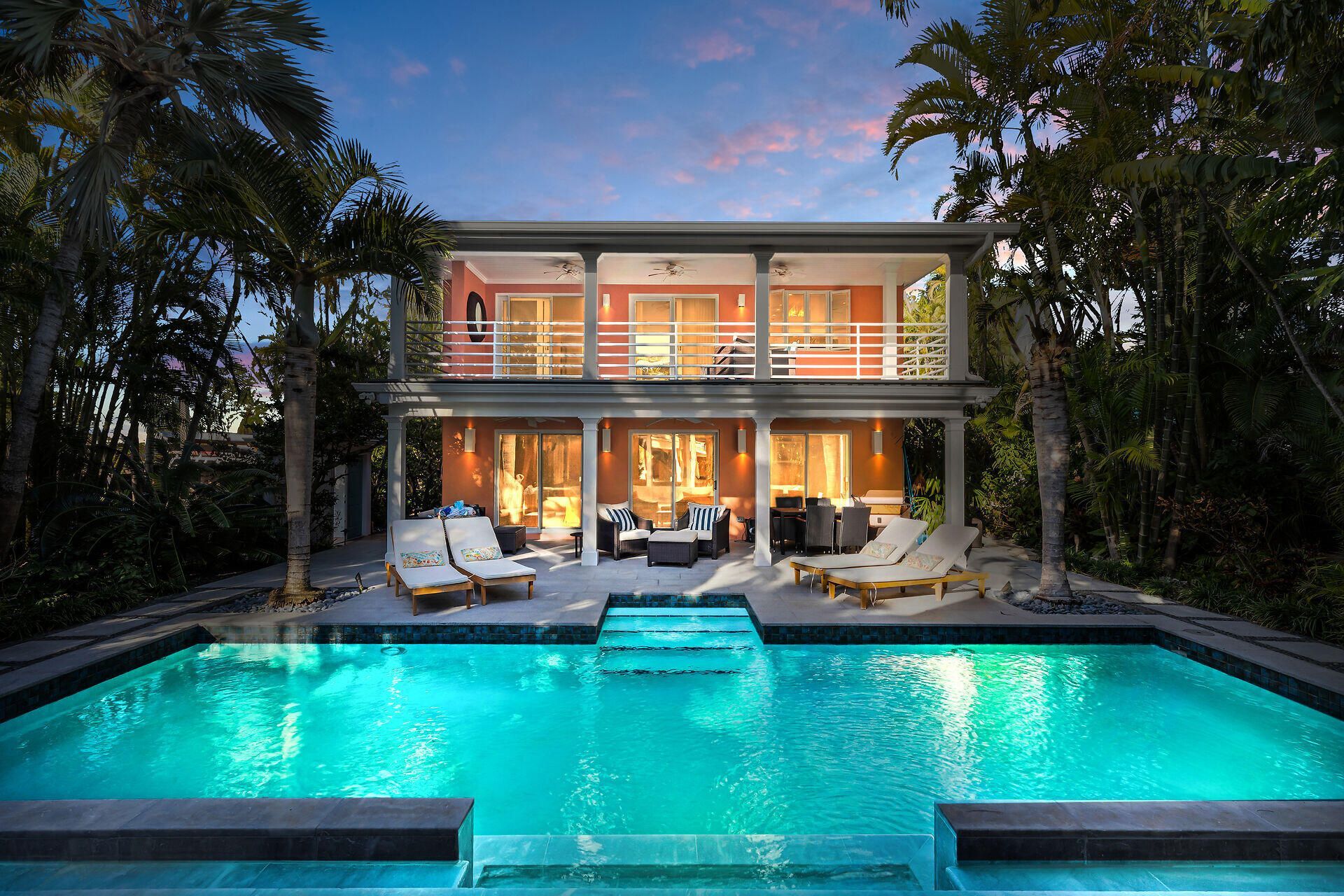 A hidden gem nestled in our popular New Town district, this distinguished single family home is a testament to estates providing rare space, privacy and refined living.Not into ''downsizing'' - 3513 Sunrise Drive encompasses 3 bedrooms, 3 full baths, and this 2-story CBS home spans 2,569sf on an expansive 9,487sf landscaped completely fenced-in super-private corner lot.The first floor is set to entertaining with Mexican tile floors throughout, a gourmet kitchen (with new appliances), dining room, open living room, bedroom and bath and a mother-in-law / guest bedroom/bath with private entrance. Both the large covered porch and separate outdoor kitchen / BBQ area state, ''relax and invite your friends over!''A dramatic flowing staircase leads to the second floor primary master ensuite bedroom with private balcony over-looking the large heated salt water swimming pool, private lush indigenous tropical exotic orchid gardens and gazebo.With private gated entrance, off-street parking, plenty of outside storage areas, and many on-site updates (automatic yard lights, timed irrigation system, Ring cameras throughout, Aquilink pool and fountain control, new roof and gutters, new A/C system, new water heater, new Kohler generator) to name a few.Enjoy our local bars, restaurants, museums, art galleries and shops, beaches, and seaport activities (all within 10 minutes), then come home to a bit of peace and quiet. Comes furnished, this charming home available to purchase and close on at your earliest convenience