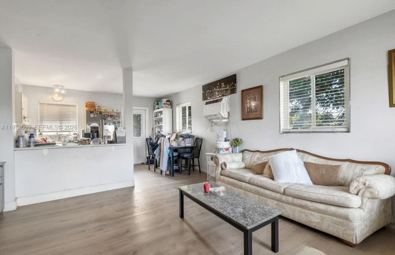 Corner lot beauty with major upgrades! Enjoy peace of mind with a brand-new roof, impact windows and doors, and solar panels for energy efficiency. Inside features laminate flooring throughout, a remodeled bathroom, and an open-concept kitchen with stainless steel appliances. Convenient washer/dryer area just off the kitchen. Wall unit A/C keeps things cool and comfortable. Step outside to a fully fenced yard?perfect for pets, entertaining, or relaxing in privacy. Move-in ready and packed with value!