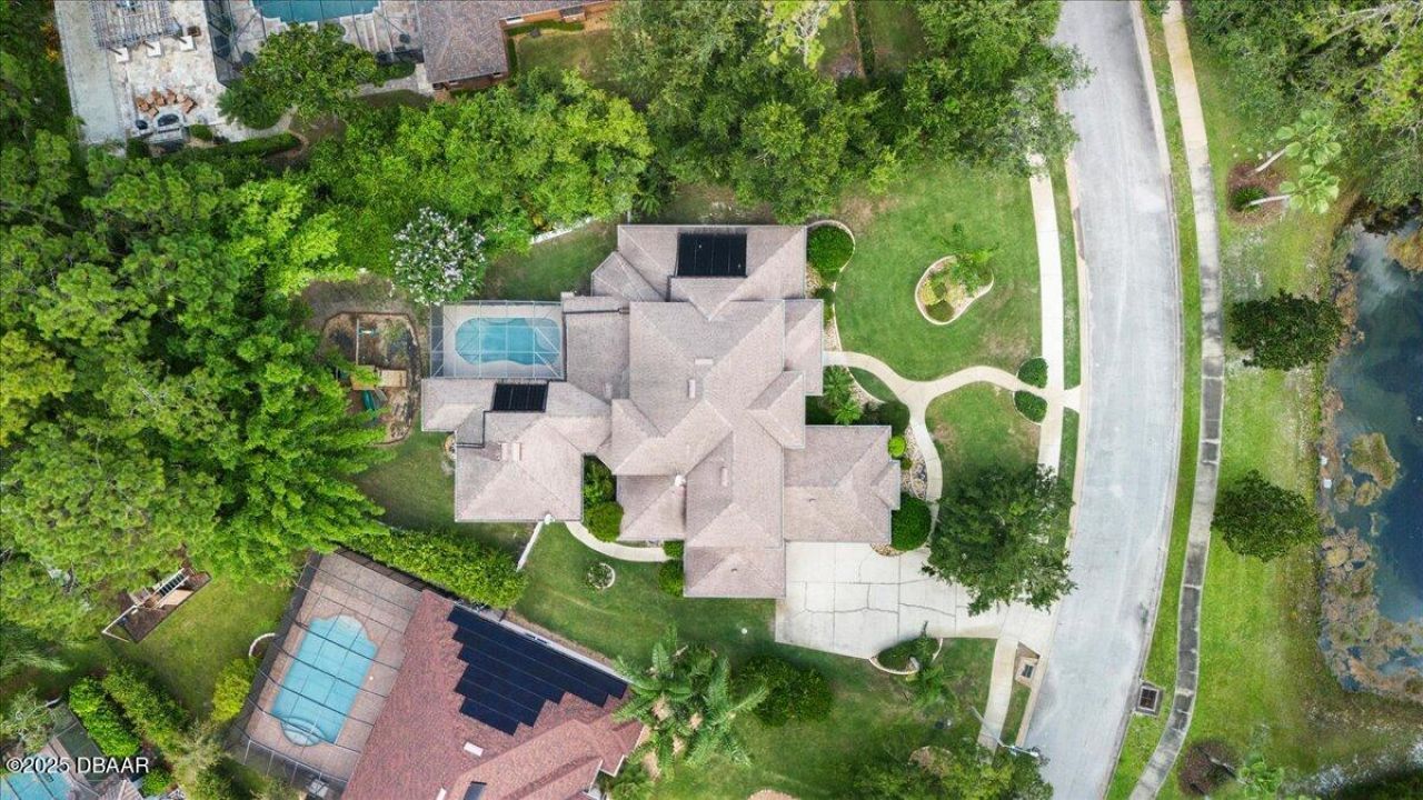 Step into luxury living at this custom-built estate in Hunters Ridge! This stunning 5-bedroom, 4.5-bath home is an entertainer's dream. From the dramatic foyer with soaring ceilings to the formal living room with its cozy electric fireplace, you'll be captivated. The gourmet island kitchen is a chef's paradise, boasting a gas range, drawer dishwasher, tall cabinets, and sleek silestone countertops, flowing seamlessly into the family room with a gas fireplace. Enjoy movie nights or game days in the separate media room/man cave. Upstairs, find two bedrooms with a Jack-and-Jill bath, plus a second owner's suite with a private bath and a dramatic open hallway. Energy efficiency is assured with insulated walls throughout. Home has been freshly painted, and with new flooring upstairs. There is a separate 500 sq ft in-law suite/ guest house with its own access and connection to the main home, perfect for guests or extended family. The huge screened pool area is an oasis for entertaining, with a summer kitchen and covered area surrounded by a new fence for added privacy. If you are looking for space and quality close to the beach, great restaurants and shops... You've found it!