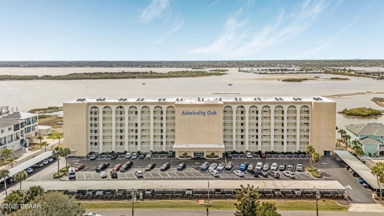 Enjoy stunning Halifax River views from this 2-bedroom, 2-bathroom 2nd-floor unit in the beautifully maintained Admiralty Club - Beachside Port Orange. This fully tiled unit offers low-maintenance living and an open, light-filled layout designed to maximize the waterfront setting.Wake up to serene river views and coastal breezes while enjoying your private balcony where boats and dolphins play across the intracoastal. This unit includes one deeded covered parking space for added convenience and protection. Admiralty Club offers exceptional amenities, including a riverfront pool and spa, private kayak launch, BBQ grilling area, spacious deck with tables overlooking the water, and a well-appointed clubroom featuring a full kitchen, ping pong table, pool table, and TV lounge area -- perfect for entertaining or relaxing with neighbors. Each floor has extra storage for all your beach toys and this building is pre approved VA. Roof 2017, HWH 2020 and AC 2024. Experience beachside living with riverfront tranquility -- all just minutes from the ocean, dining, and shopping.