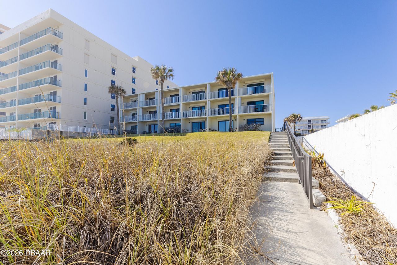 Here is the private and peaceful beach escape you've been looking for! Enjoy beautiful ocean views and a welcoming and well-cared-for interior that includes LVT flooring, an updated kitchen, and an updated bathroom. A private walkway leads to the ''World Famous'' sands of Daytona Beach Shores, where you can walk to a popular restaurant on the Sunglow Pier or relax on a traffic-free area of beach just to the south. There are just 12 units in this two-story complex with a shared two car garage. Enjoy the peace of mind of an A/C that is just 3 years old. This property can be perfect for full-time living, a vacation getaway, or an investment property. Come check it out today!