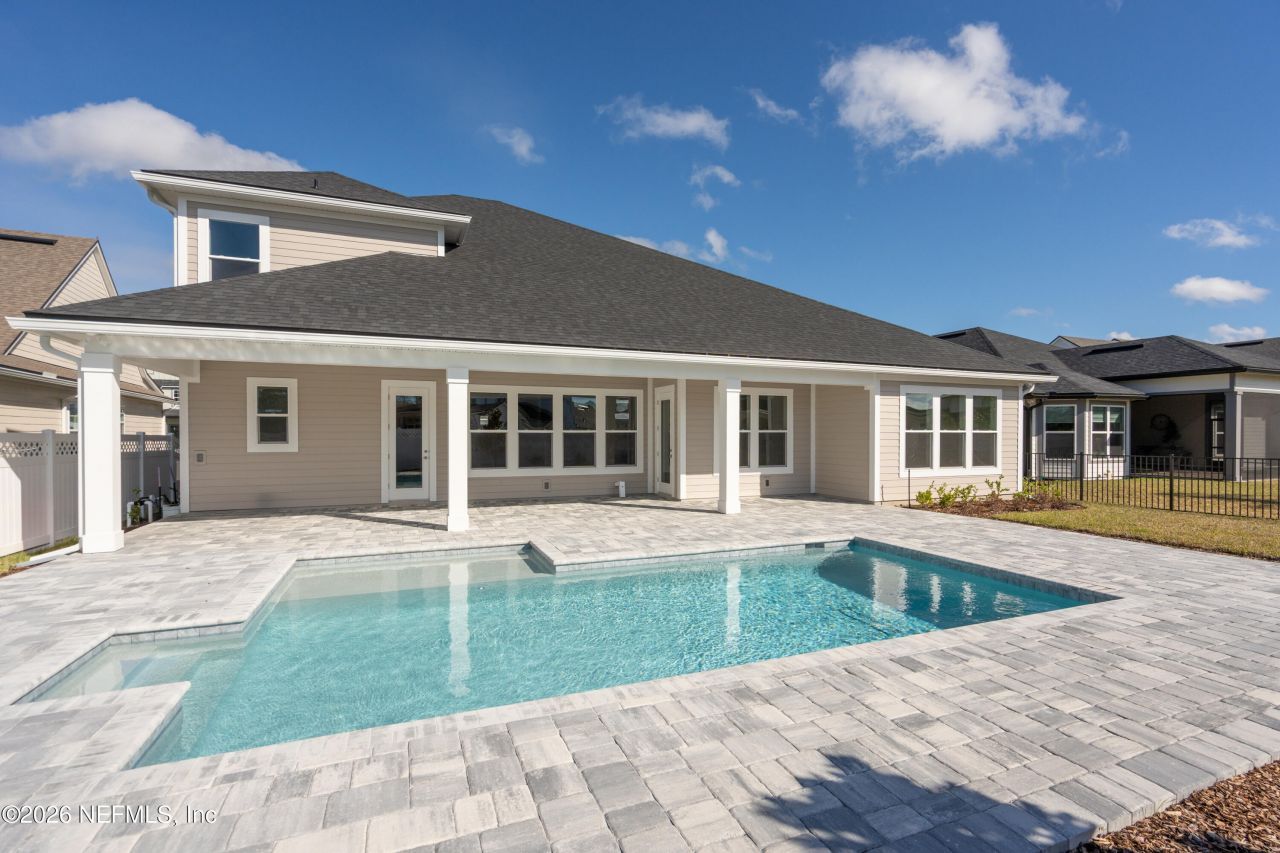 Experience elevated living in this stunning new construction POOL HOME by MasterCraft Builder Group, nestled within the prestigious gated enclave of Courtney Oaks at John's Island in the no-CDD Silverleaf community. The Ella, a two-story Craftsman showpiece, offers 5 bedrooms, 5 baths, a spacious bonus room, versatile flex room, and 3-car garage. The chef's kitchen is appointed with premium Electrolux appliances, quartz countertops, dovetail soft-close cabinetry, and designer gold fixtures. Expansive living spaces flow seamlessly to a covered lanai, perfect for entertaining, overlooking a sparkling pool. Rich engineered hardwood floors, refined finishes, and a sophisticated neutral palette create a timeless ambiance throughout. Thoughtful design meets modern luxury, with every high-end appliance included-from refrigerator to washer and dryer-ensuring comfort and elegance in every detail.