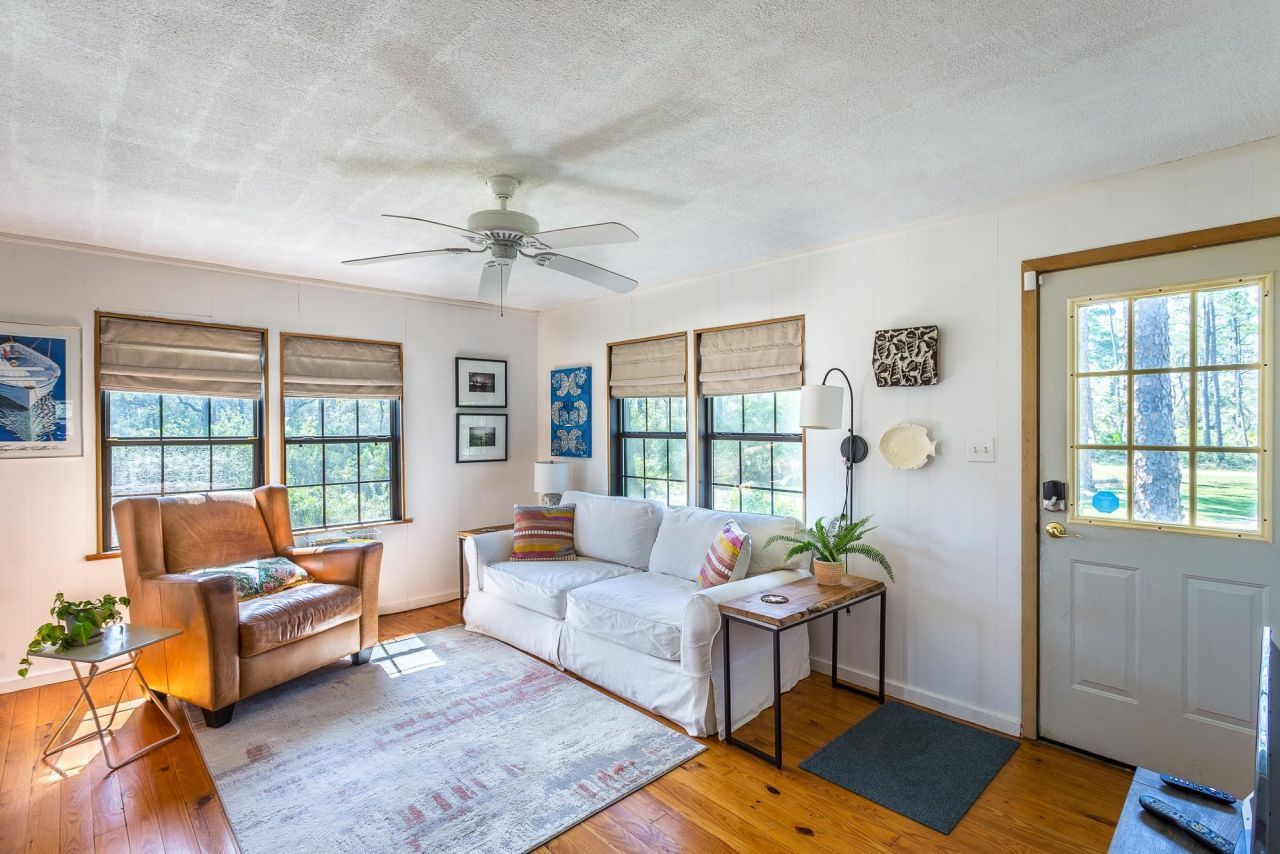 Charming beach cottage on Bald Point! FANTASTIC LOCATION adjacent to State Park property and a short block away from the sandy beaches and the Gulf waters. The perfect home for a permanent residence, a weekend retreat, or an investment property. The cottage is clean and cozy with hardwood floors and tons windows offering ample amounts of sunlight. Coastal chic touches throughout include shiplap walls, tastefully remodeled kitchen and nautical hues. The deck outside overlooks the spacious yard, perfect for evenings outside or and to experience the abundant wildlife that surrounds. Enjoy all that nature has to offer in this super cute and charming cottage!