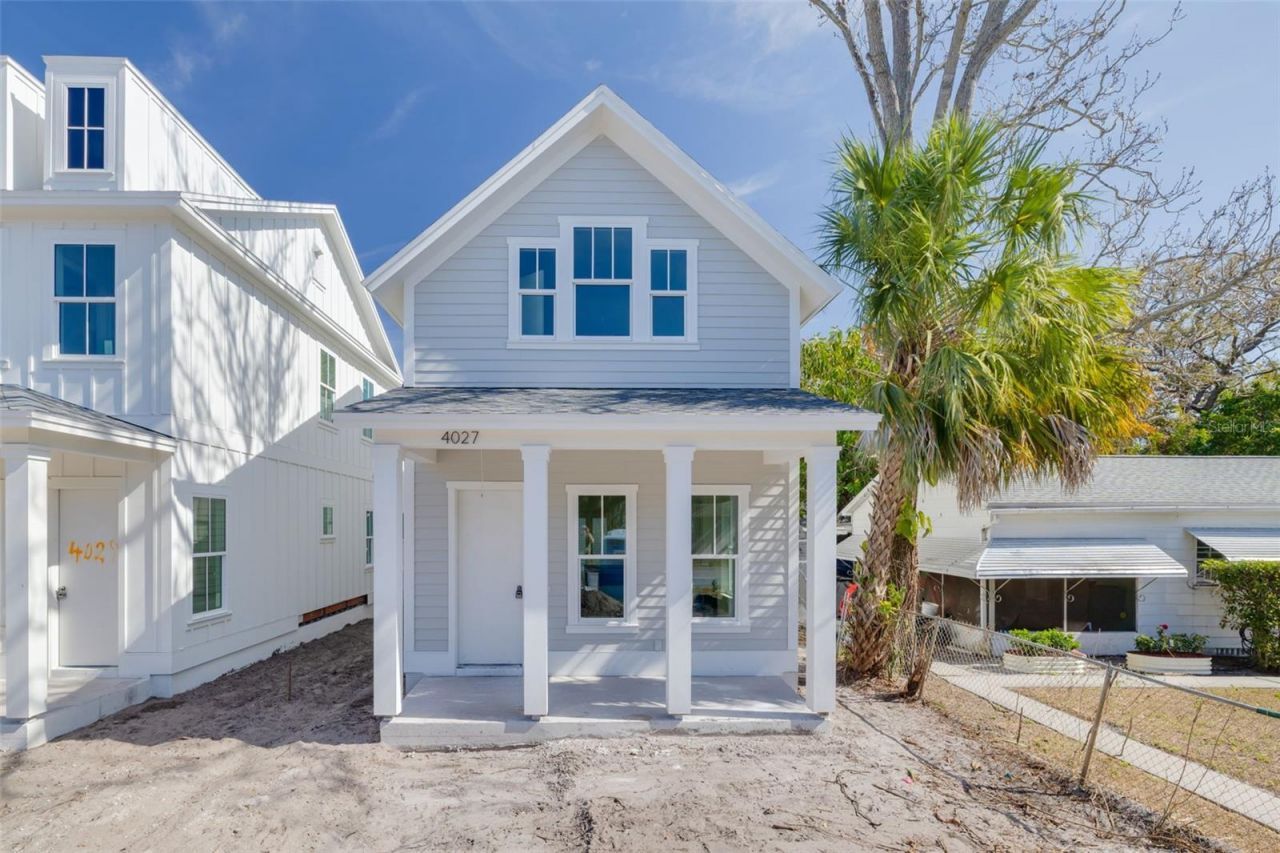 Under Construction. 4027 Haines Road North is a thoughtfully designed new construction home by Canopy Builders, located in the Allendale area of St. Petersburg. Designed as an efficient plan on a smaller lot, the home offers 1,826 square feet of air-conditioned living space, including 3 bedrooms, 2.5 bathrooms, and a dedicated upstairs study, with a layout that maximizes space while maintaining a strong focus on design.The exterior features Canopy Builders' signature gas pendant, creating a warm and recognizable entry. Inside, the home is finished with engineered white oak hardwood flooring on both the first and second floors, reinforcing continuity and quality throughout.The main living space is arranged as an open kitchen, dining, and living area designed to feel open and well connected. The kitchen features custom shaker-style cabinetry, with upgraded quartz countertops and a full-height quartz backsplash at the perimeter, paired with a soapstone island that adds contrast and visual interest. A farmhouse sink, custom hood surround, statement island pendants, and wall sconces flanking the range contribute to a kitchen that feels layered, warm, and intentionally designed. Upstairs, the study provides a flexible space for working from home or quiet daily use, while the bedroom layout is thoughtfully arranged for comfort and privacy.The primary bathroom is finished with marble tile flooring and marble shower walls, including a recessed niche, along with wall-mounted faucets and carefully selected fixtures that create a spa-like experience. The secondary bathroom continues the same level of detail with marble mosaic flooring and cohesive tile and fixture selections throughout. The first-floor powder bath is designed as a moment of character, featuring custom designer grasscloth wallpaper and wall-mounted plumbing, adding texture and interest.Throughout the home, designer lighting, custom cabinetry, and curated material selections elevate each space and reinforce the home's cohesive design. Conveniently located near neighborhood amenities, parks, and major corridors, 4027 Haines Road North offers easy access to downtown St. Petersburg, dining, and shopping, while remaining within one of the city's established residential neighborhoods.Schedule an appointment to learn more about the selections made for this home and how to make it your own.