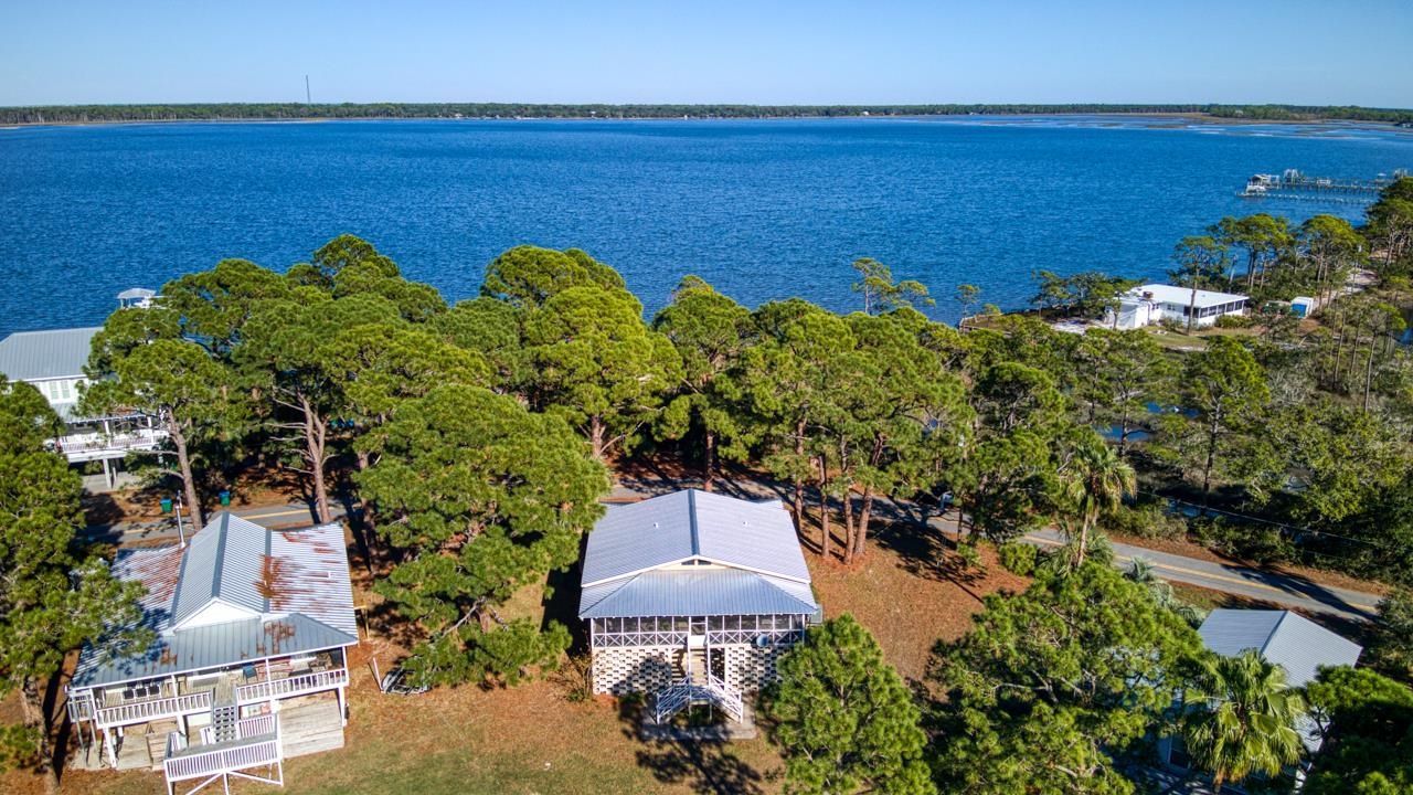 Classic Florida Beach House with views of Alligator Bay and Canal Frontage with Dock! This beautiful home has been lovingly cared for by the Original Owners since its construction in 1973. Featuring a Split Floor Plan and Open Concept, this home lives large! An oversized raised Front Porch provides beautiful views of the Bay as you relax on the Porch Swing; Large Glass Front Doors Enter into the Great Room where you'll find Soaring 20+foot ceilings with Open Beams and Large Windows to let the Sunlight in; The Kitchen and Large Breakfast Bar are to the rear of the Great Room with Seating for up to 12 and Access to the Back Screened Porch. A Dining Area just off the Great Room looks out to the Front of the property and provides a space to Gather as you Enjoy the Fruits of your Latest Gulf Catch! The Primary Bedroom and Ensuite are just off the Kitchen and Have Beautiful Views of the Canal Frontage; Two Cozy Bedrooms and Shared Bath are just off of the Great Room and provide views to the Canal and Bay. A Beautifully Shaded Yard with Mature Pines provides a respite from the Summer Sun and a great place for family gatherings and play. Under the home you will find a laundry Room, Ample Storage and two Bays for Car or Boat Parking. Beach Access is Just at the Gulf End of Fiesta Drive to the Right. This Lovely Home is full of happy memories and ready for its next family! Sold Fully Furnished with a New 2024 Metal Roof! Sold as-is, all measurements approximate.