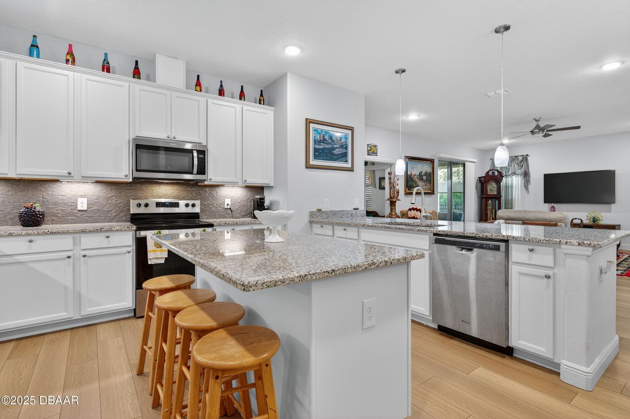 Welcome to this beautifully maintained 4-bedroom, 2-bath home with a 2-car garage in the sought-after 55+ community of Huntington Village. The OPEN FLOOR PLAN flows through spacious living and dining areas into a large kitchen featuring 42-inch cabinets with crown molding, quartz countertops, stainless steel appliances, and a SECOND ISLAND. Enjoy the SCREENED PORCH and patio overlooking a PRIVATE FENCED BACKYARD with gutters and French drains for added peace of mind. Additional upgrades include a water softener and HURRICANE SHUTTERS.HOA covers cable, internet, lawn care, irrigation, exterior paint, pest control, and RESORT-STYLE AMENITIES including a pool, clubhouse, fitness center, sauna, playground, basketball court, and dog park.SELLER OFFERING BUYER CONCESSIONS toward HOA-related fees, closing costs, or prepaids, providing added flexibility at closing.