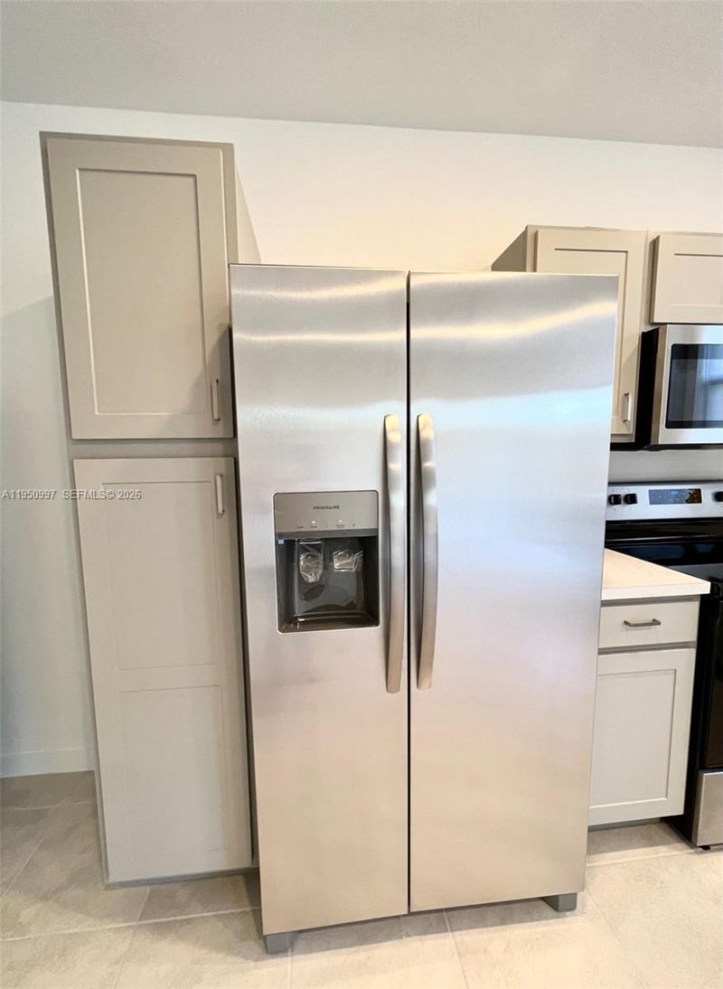 Beautiful 3 Bedrooms 3 Baths with exceptional details.On the ground floor,ceramic floor, w/a complete room that includes a full bathroom.Kitchen features stainless steel appliances and 2 fridges. 2 fixed parking spaces right at your front door ensuring comfort for you and your loved ones. Prime location next to BJS, with immediate access to shopping centers, Florida Keys Outlet Mall, Turnpike & US-1. Main bedroom has a wall to wall custom made closet, 2nd bed a walking closet. All baths has glass shower doors, new blinds through the home, fans & smart home system. Large fenced in backyard w/new Turf surface a delightful addition providing ideal space for recreation,relax+easy maintenance.This house is truly a marvel.Full size Washer/Dryer. Complex have a pool, kids playground and more! Ready to move.