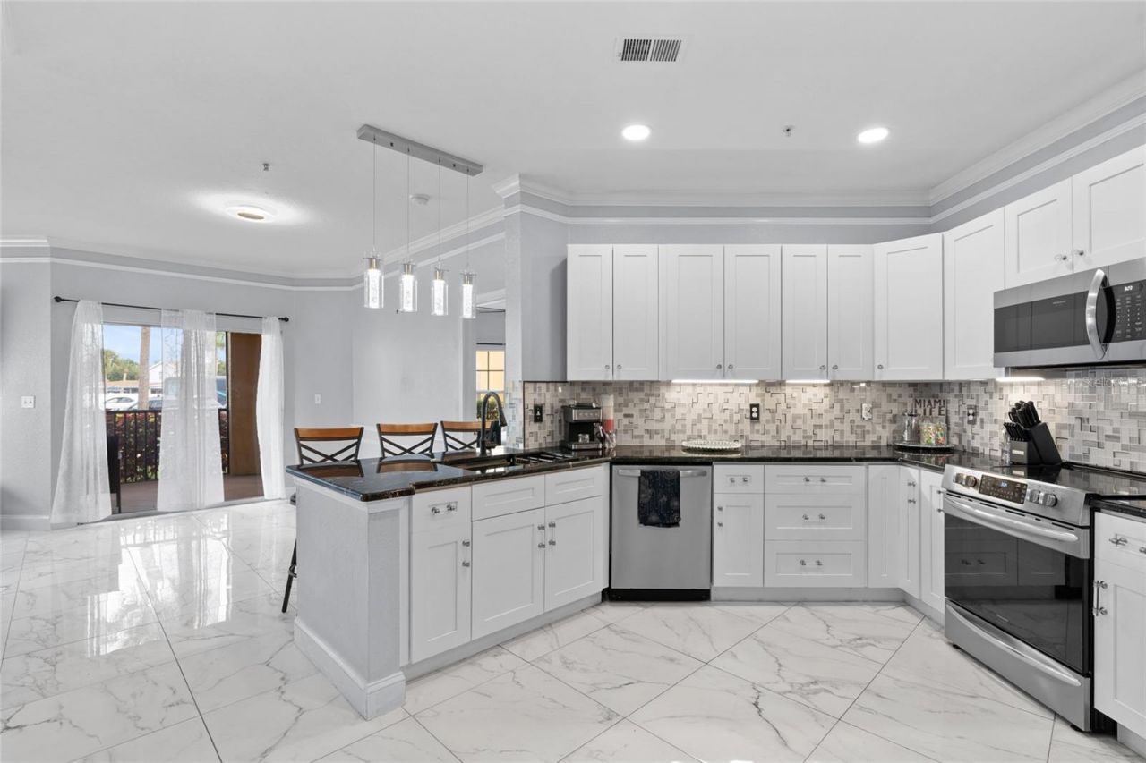 Welcome home to this stunningly updated 2-bedroom, 2-bathroom condo located in the highly desirable, gated Beachwalk Condominiums of Tampa. Designed with modern living in mind, this home blends contemporary style with everyday comfort through an open-concept floor plan and elegant finishes throughout.The heart of the home is the beautifully reimagined kitchen featuring granite countertops, custom cabinetry, stainless steel appliances, mosaic tile backsplash, a sleek pull-down faucet, and elegant pendant lighting. The seamless connection between the kitchen, dining, and living areas makes this the perfect space for entertaining or relaxing in style.Both bathrooms have been transformed into spa-like retreats with marble-tiled showers, rain shower heads, LED-lit vanities, mirrored shelving cabinets, and waterfall vessel sinks. The primary suite takes it a step further with a luxurious multi-head shower system and a spacious walk-in closet.Additional highlights include crown molding, oversized insulated windows that fill the home with natural light, fresh paint, and premium porcelain tile flooring throughout. Enjoy your morning coffee or evening unwind on the private screened balcony overlooking lush tropical landscaping, complete with a storage closet and newly replaced screens.Recent upgrades include a newer A/C (2019), water heater, washer, dryer, and LED lighting for modern convenience and efficiency.Beachwalk offers true resort-style living with amenities such as a 24-hour manned security gate, fitness center, pool, clubhouse with game and billiards rooms, business center, auditorium, canoe dock with bay access, and a scenic boardwalk along the water. HOA fees include water, sewer, and valet trash service, providing a low-maintenance, turnkey lifestyle in one of Tampa's most convenient locations-just minutes from the bay, shopping, dining, and the airport.