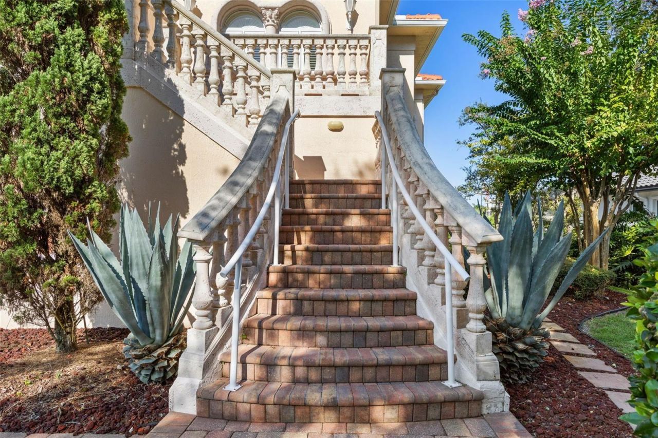 One or more photo(s) has been virtually staged. Experience architectural excellence & timeless elegance in this distinctive Skyway Builders Mediterranean Estate Home, perfectly positioned on the 14th hole of the Hammock Beach Golf Course. Built in 2009, this two-story residence exudes sophistication, craftsmanship, & breathtaking golf & ocean views. The multi-generational living quarters are superior. Handicap-accessible features were thoughtfully built into the design.A short drive into this gated neighborhood of gorgeous homes leads you through a forged iron front door into a grand foyer that sets the tone for the home's dramatic interior, featuring double tray ceilings, graceful arches, columns, & custom lighting throughout. Floors are Porcelano Brazilian rectified tile, with mosaic accents in the foyer & Spanish tile featured elsewhere in the home, adding to its distinctive character.The great room offers soaring ceilings & a wall of impact-rated, tinted windows & French doors framing spectacular course views. The chef's kitchen is designed for both beauty & function, showcasing custom cabinetry, granite counters, a 36-inch gas cooktop w/ grill, built-in wall oven, cabinet pantry, & wet bar w/ under- & upper-cabinet lighting. A breakfast nook w/ chandelier & adjoining gathering room w/ wet bar, plus formal dining, powder room & elegant office complete the upper level's elegant flow-perfect for entertaining.Also on this floor is the primary suite-a serene retreat w/ private foyer, perfect for coffee bar, dressing/exercise room, spa-style bath w/ soaking tub & oversized shower, large walk-in closet w/ custom shelving, expansive separate linen closet w/ window, three vanities & water closet w/ bidet.Elevator access in the middle of the home takes you down to the lower level offering exceptional versatility. Featuring three bedrooms total on first floor, one of which could make an amazing game/craft room w/ double walk-ins, & the other two w/ baths en suite (one w/ walk-in), plus another powder bath, wet bar w/ mini fridge in another living room-perfect in-law suite for one/two sets of parents-plus large laundry room.Tiled, tandem four-car garage (20.8' x 30.6') provides generous space for vehicles, golf carts & storage, w/ additional utility & under-stair storage areas. Outdoor living includes two covered porches, gas fireplace, tiled patios & decorative balustrade railings surrounding multiple terraces-perfect for relaxing or entertaining while enjoying panoramic views. Summer kitchen includes exhaust fan vent w/ switch. Ample space to add a pool if desired.Additional features include owned (but disconnected) alarm system & newer air conditioners (1-2 yrs old), ensuring comfort & peace of mind.Crowning this home is stunning Belvedere tower w/ spiral staircase, offering one of the most captivating vantage points in Hammock Beach-sweeping views of the golf course, club & Atlantic Ocean. From barrel-tile roof & handcrafted finishes to grand chandeliers, niches & architectural details, this home is a masterpiece of design & quality.Located in gated North Shore section of Hammock Beach, this property offers ultimate blend of luxury, privacy & proximity-just moments from the beach & world-class golf.