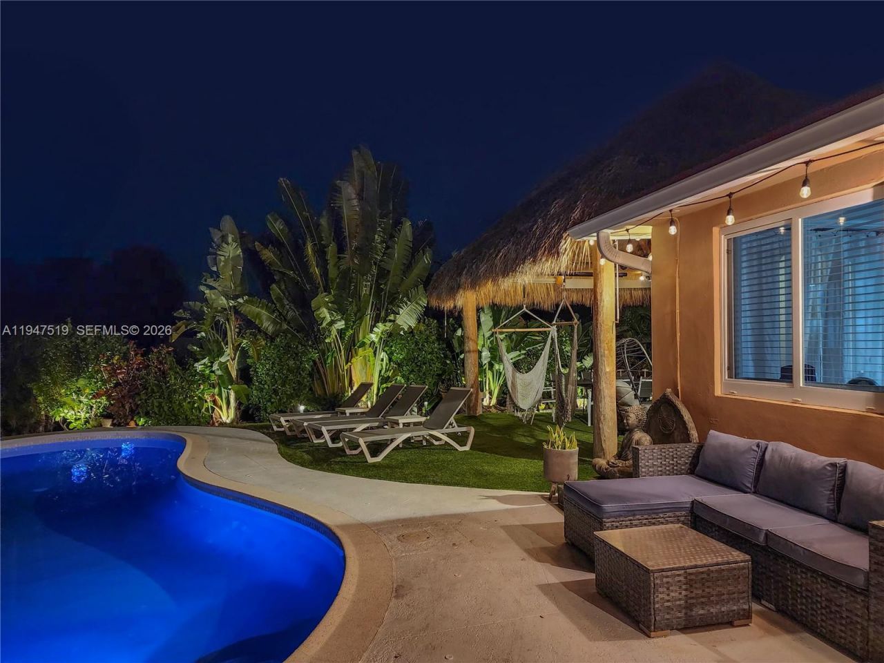 Experience resort-style living year-round in this exceptional canal-front home with impeccable landscaping. Thoughtfully updated and professionally designed, this residence features newer saltwater concrete heated pool, private floating dock, and a charming very private expansive backyard with oversized Tiki?perfect for relaxing or entertaining. Enjoy peace of mind with a newer roof, hurricane-impact windows and doors installed in 2022, and a new AC system. EV charger installed and the whole house is pre-wired for the generator. Meticulously maintained house, freshly painted interiors complement the homes modern, coastal aesthetic. Ideally located in a highly desirable area, close to shopping, dining, entertainment, and major conveniences. This is waterfront living at its finest?where comfort, style, and location come together seamlessly.