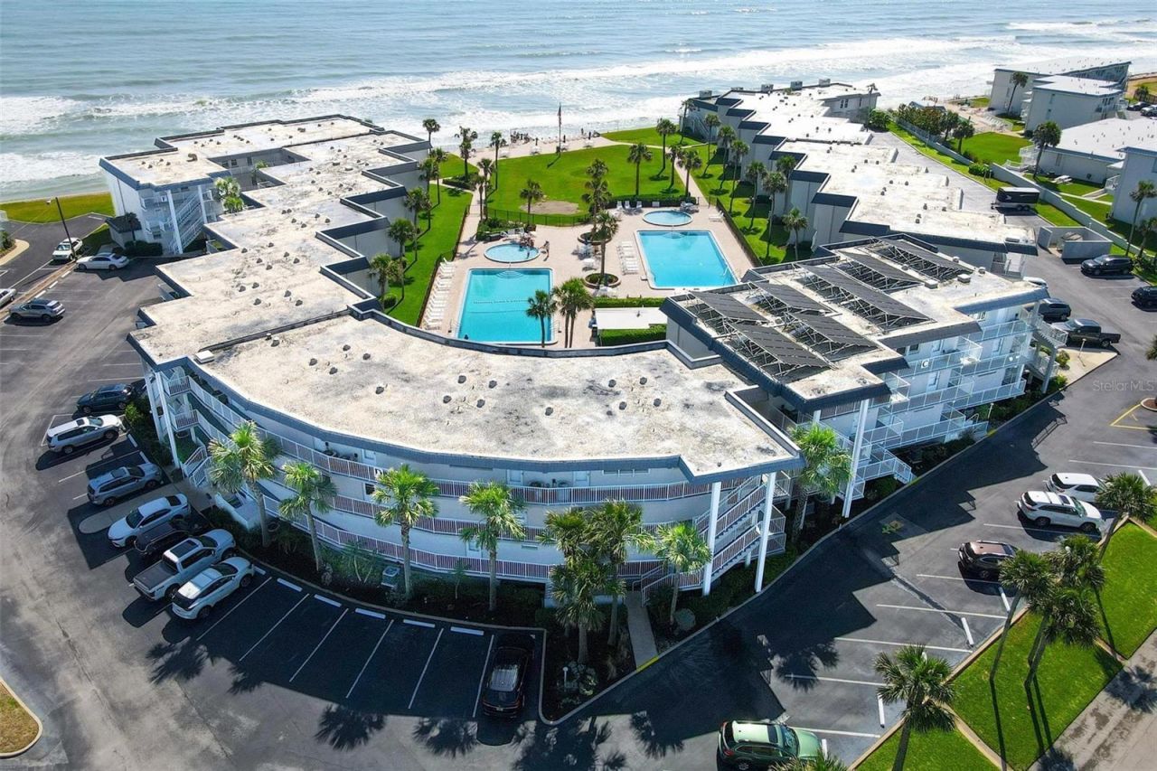 Welcome to your slice of paradise at The Southeaster! This stunning 2-bedroom, 2.5-bath beach condo offers the perfect blend of comfort, style, and resort-style amenities - all just steps away from the NO DRIVE beach. Nestled on 5 beautifully maintained acres, this property is a true gem in the heart of New Smyrna Beach. Inside, you'll find a bright and breezy coastal-inspired interior with beachy decor throughout. The spacious layout includes two generously sized bedrooms, two full bathrooms, and a convenient half bath - ideal for entertaining guests. Step out onto your private balcony overlooking the pool and take in the warm ocean breeze with your morning coffee or evening cocktail. The community features everything you need for relaxation and recreation: including a large community recreation room, two laundry facilities on site, two large pools, two kiddie pools, two tennis courts, pickle ball court, basketball court, shuffleboard, and plenty of parking for residents and guests alike. The lush courtyard faces the ocean, creating a serene and scenic backdrop to unwind and enjoy happy hour on the seawall. Whether you're looking for a weekend retreat, a full-time residence, or an investment property, this condo checks every box. All assessments have been paid. Don't miss your chance to own this turnkey, highly sought out beachfront condo in NSB! On site property manager for vacation rentals is available. New AC installed on May 21, 2025.