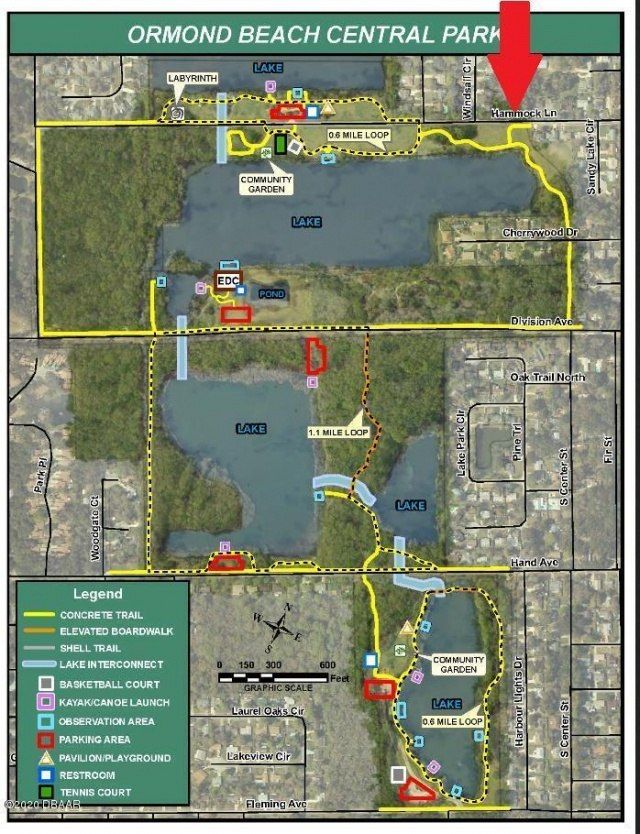 This lot is one of the only (if not THE ONLY) lot left sitting directly across from Ormond's cherished Central Park. This treasure is 149 acres of gazebos, playgrounds, tennis courts, miles of walking/jogging/biking paths and several fishing and kayak friendly lakes. Build your dream home on this half acre lot with the park as your backdrop and at your constant disposal! All this and you are super centrally located in Ormond Beach! Minutes from the sand and sea, shopping, dining, banking and houses of worship. Water, sewer and electric are accessible as well. Survey available in documents.