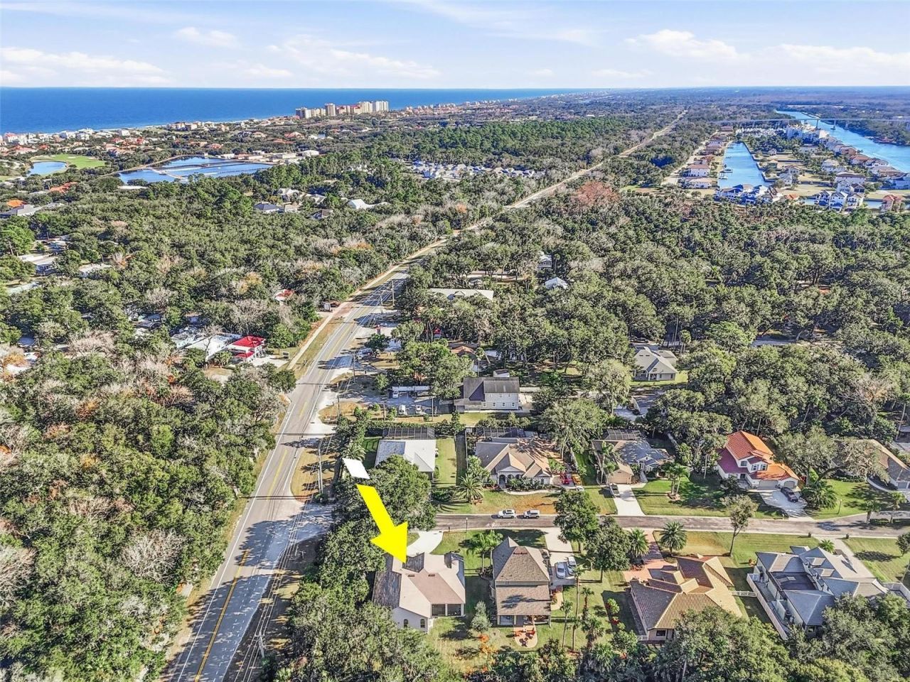 Nestled beneath beautiful, mature oak trees in the highly desirable Hammock, this stunning 4-bedroom, 2-bath residence is located within the gated River Oaks subdivision, ideally positioned between the Atlantic Ocean and the Intracoastal Waterway. This elegant home offers a bright, open floor plan with soaring ceilings, crown molding, and an abundance of natural light throughout. The kitchen features stone countertops, stainless steel appliances and magnificent custom cabinetry. Additional highlights include marble window sills, double-pane windows, and an oversized 2-car garage. The primary suite is a true retreat, boasting a spa-inspired bath with a jetted soaking tub, dual vanities, and two walk-in closets with custom cabinetry. French doors open to a covered and screened lanai, perfect for relaxing or entertaining. Recent upgrades include a new roof (2021), A/C (2017). This home also has a sprinkler system with irrigation well. Whether your lifestyle embraces beachside living or boating adventures, both are just moments away-offering the ultimate in refined coastal living.