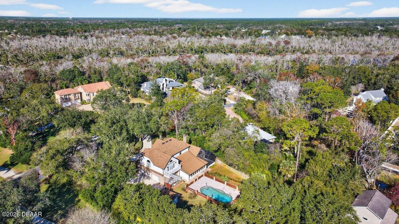 Welcome to this exceptional four-bedroom, three-and-a-half-bath, two-story brick estate home located in the exclusive Tidewater neighborhood of Ormond Beach, ideally situated in a central location close to everything. As you arrive, you'll immediately appreciate the nearly three-quarter-acre oversized lot, highlighted by a grand circular driveway that sets the tone for this impressive residence. Inside, the home showcases a newly remodeled chef's kitchen featuring quartz countertops, white shaker cabinetry, Thermador stainless steel appliances, and a large center island"perfect for preparing gourmet meals and entertaining. The open floor plan is enhanced by luxury vinyl plank flooring and includes a formal dining room, a private office with a fireplace, and a stunning den accented by a brick fireplace and real wood ceiling. The enormous living room offers abundant space for family gatherings and entertaining guests. Upstairs, all four bedrooms are thoughtfully designed, including a spacious primary suite with a private balcony and a recently remodeled bathroom. Two additional bedrooms share a Jack-and-Jill bathroom, while the fourth bedroom enjoys its own private batheach bathroom in the home has been beautifully remodeled. Throughout the residence, you'll appreciate the timeless traditional woodwork that adds warmth and character. Outdoors, embrace the Florida lifestyle in the screened-in lanai overlooking a beautiful oversized inground swimming pool and expansive backyardideal for barbecues and entertaining. An additional detached building offers flexibility as a workshop or extra storage. Located near top-rated schools, hospitals, shopping, dining, and the area's pristine beaches, this remarkable home is a rare opportunity. Schedule your private showing today.
