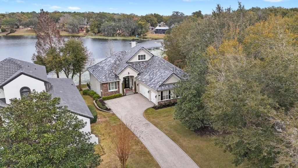 Welcome to 527 W Blue Water Edge Drive, a beautifully updated 4,000 sq ft custom waterfront home located in the gated Blue Lake Estates community near Mount Dora. Positioned at the end of a cul-de-sac, this property offers panoramic lake views from nearly every room. The home features concrete block construction on both levels. Recent major upgrades include a new concrete tile roof (2025), two new HVAC systems, new downstairs windows, 80-gallon hybrid water heater, whole-house water softener, and a new sump pump. The main level of the home features an open-concept kitchen, living, and dining area with French doors leading to a screened balcony overlooking the water views. The updated kitchen includes Caf? double wall ovens and microwave, updated cabinetry, a new backsplash, and custom pantry shelving. 2 bedrooms and an office are located on the main level, both of the bedrooms are full suites with a large dedicated en-suite, and large walk-in closets. The office also functions as an additional bedroom, and would be ideal for guests or a nursery. The fully renovated lower level offers a large family room, a flexible bonus space for office, gym, or playroom, and a private guest suite with full bath. The layout is ideal for multigenerational living or guests. Both downstairs entertaining spaces provide direct access to the backyard.The backyard features a new paver patio, fenced yard, and views over the spring fed lake. The nearby parks and recreational areas provide opportunities for outdoor activities. Situated only minutes to downtown Mount Dora and downtown Eustis, and 15 minutes to SR 429 route to Orlando. This offers easy access for commuting or enjoying amenities in the City of Orlando, at Disney and the airport. Call today to schedule a private tour.